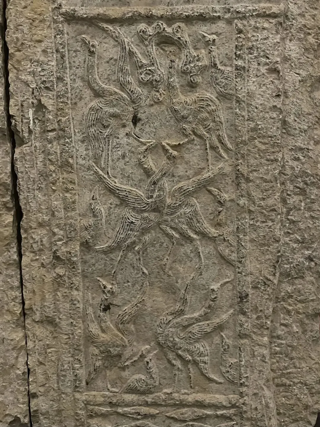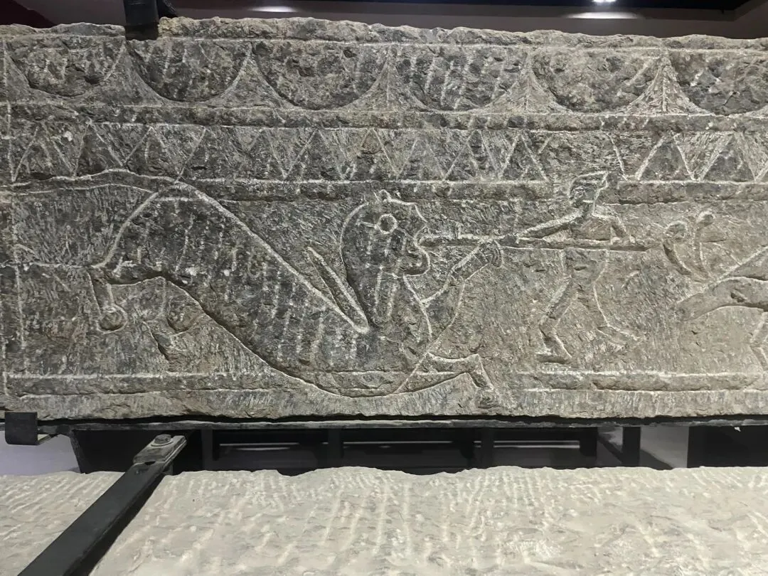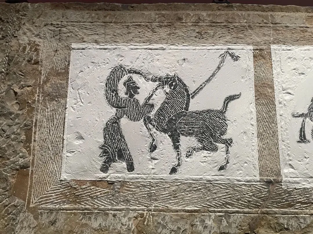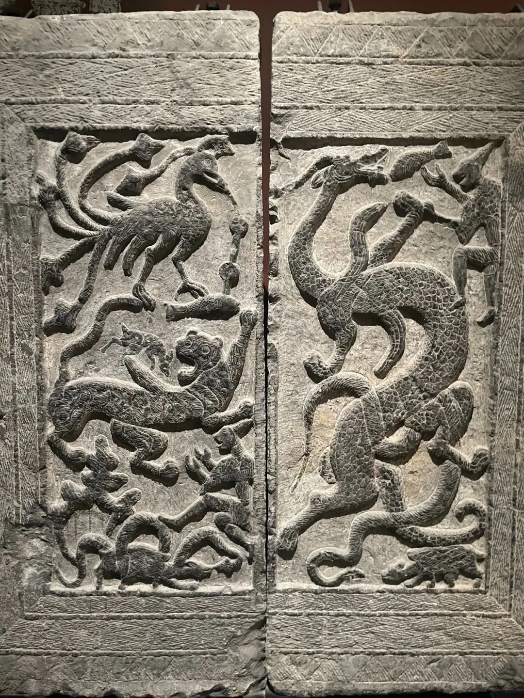 此行的目的,便是徐州汉画像石艺术馆。此馆分南北两馆,北馆为院落式布局,一部分在户外,一部分在屋内,而南馆则是完全在室内的。其中展品数量相当庞大,北馆的展览方式也相当草率,一些石板直接挂在户外墙上,任凭其风吹日晒。这个比徐州的更好一些,包括一些展品的投影影像制作啥的最后,我想吐槽一下徐州和滕州这两个馆的文创产品,我认为设计的都不是很好。金属挂件和冰箱贴一类,文物本身无色彩,而文创产品非要将图形填上饱和度极高的色彩,虽然色彩搭配还可以,但是几乎是和文物本身没什么关系了。明信片的排版也很丑,明明把拓本直接印上去就已经很漂亮了,却还要加一个边框和一个大logo。