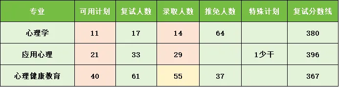 其中心理学扩招3人,应用心理专业扩招7人,心理健康教育专业扩招了15人。045116心理健康教育补录2人,应用心理专业有少干计划考生。