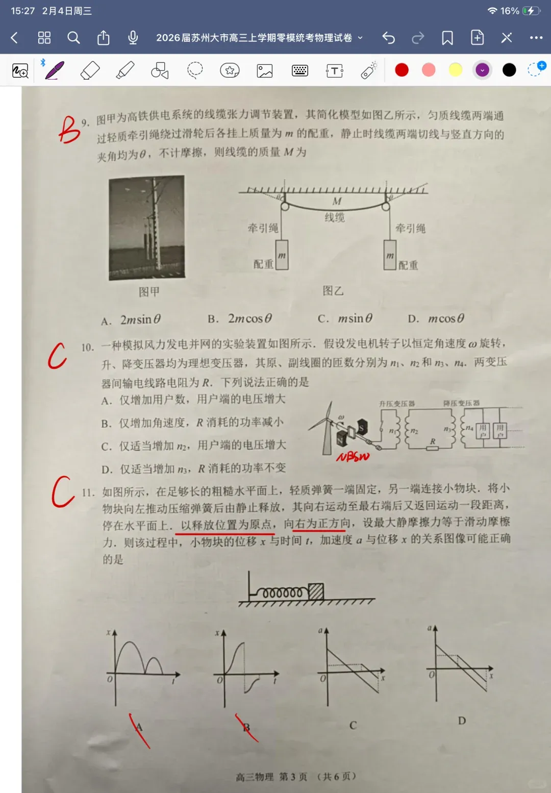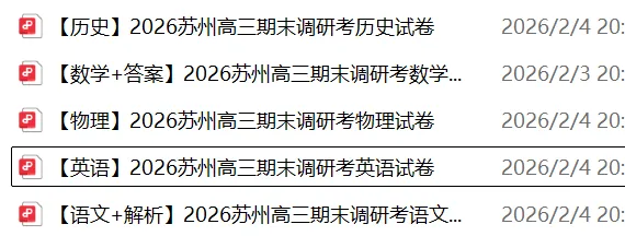 >2026苏州高三期末调研考历史+物理+英语+数学+语文试卷及答案