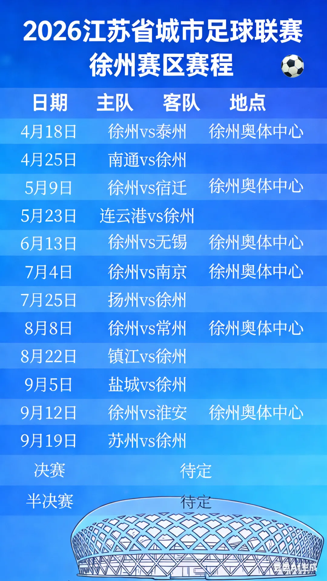 >官宣!徐州苏超赛程震撼来袭,主场比赛不容错过!