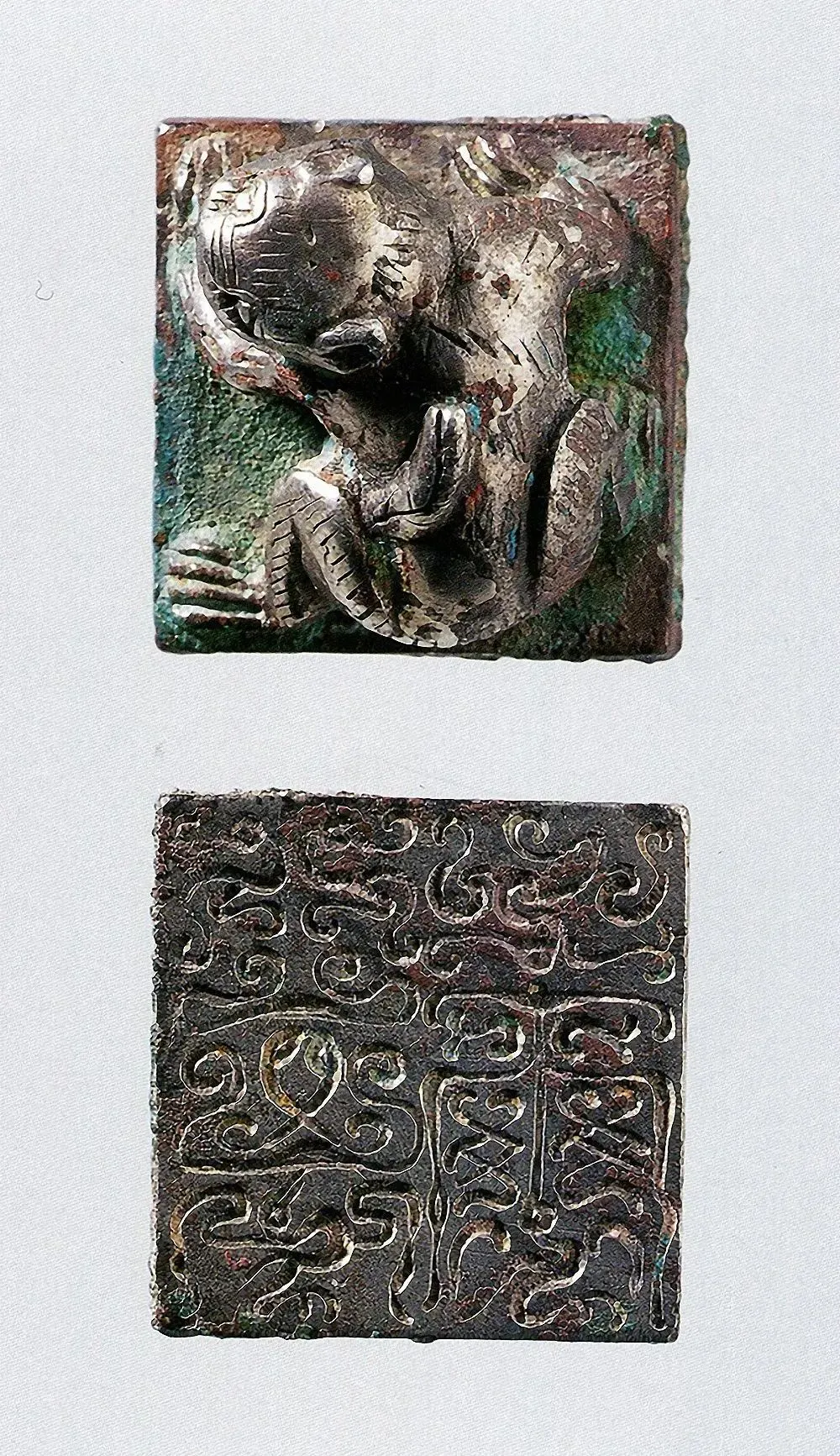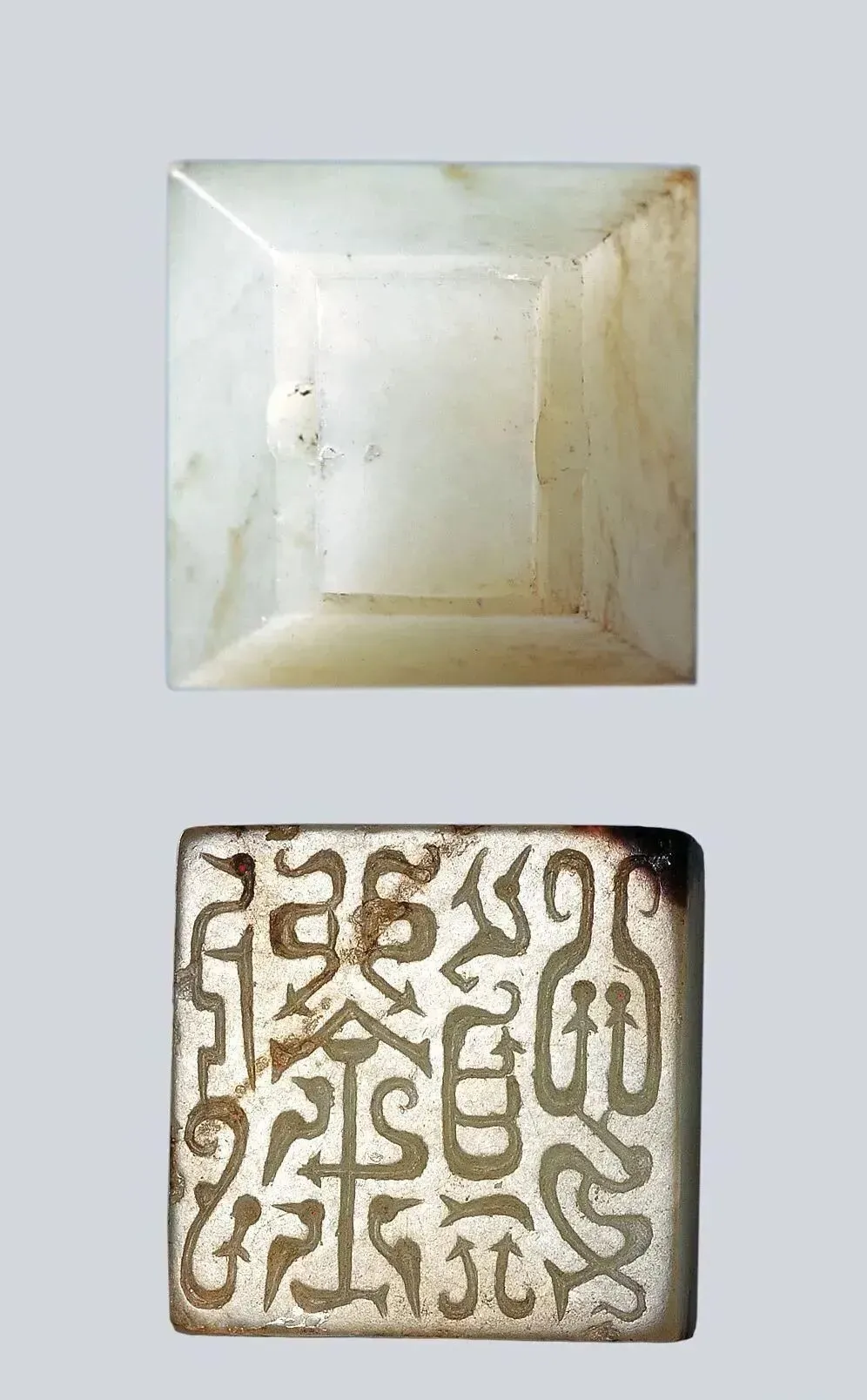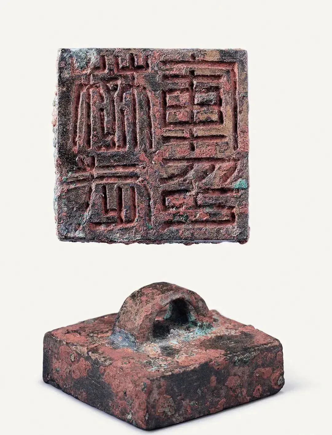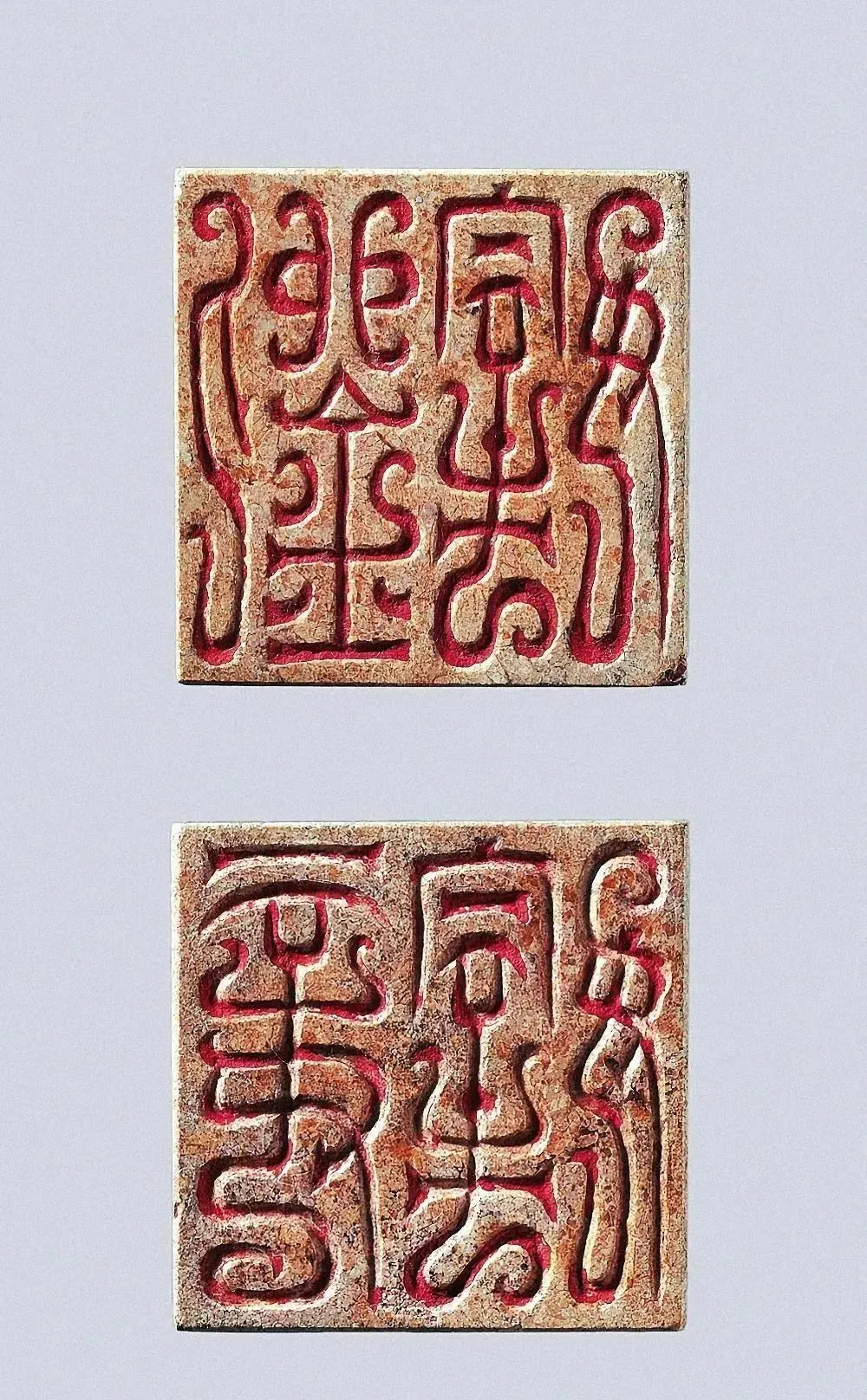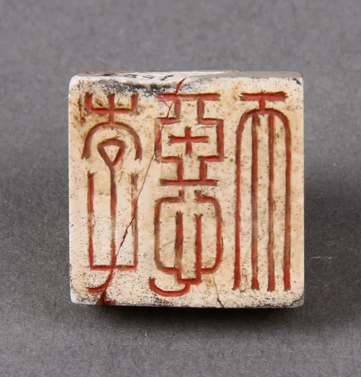 尺寸:印面长2.4厘米 宽2.4厘米 通高1.5厘米来源:2006年出土于徐州市东郊上甸子村黑头山1号墓尺寸:长1.85厘米 宽1.85厘米 高0.85厘米尺寸:通高1.5厘米 印面长1.9厘米 宽1.9厘米琉璃印篇