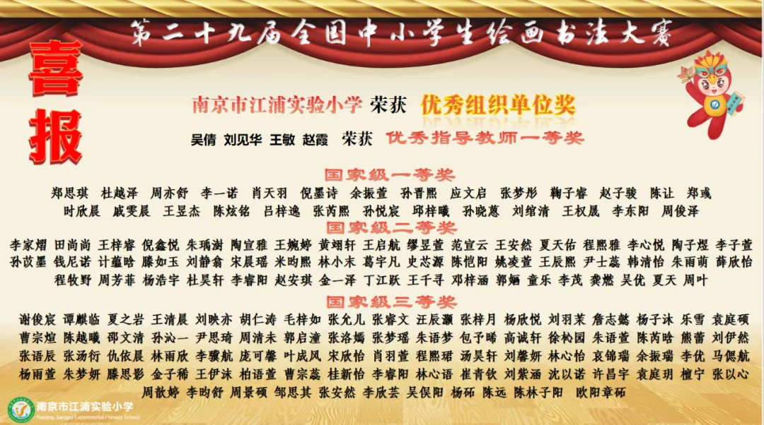 以美为灯,逐光而行;以艺为桥,润心成长。南京市江浦实验小学美术组将始终坚守美育初心,深耕艺术教育沃土,不断优化课程体系、丰富展示平台、深耕教学研讨,持续挖掘每一位学子的艺术潜能,让美育之花在校园处处绽放,让每一位孩子都能在美的浸润中,涵养气质、锤炼品格、收获成长,用画笔勾勒梦想,用热爱奔赴远方,续写学校美育工作的崭新篇章。