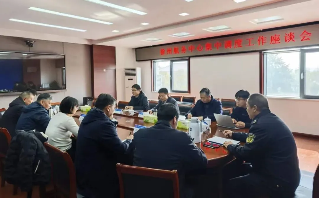 在徐州航务中心集中调度中心,处领导一行实地检查运行状况及“一闸过”船队提级管控措施落实情况。召开专题座谈会,听取关于调度监测系统优化的相关建议,并就筑牢安全防线、筑牢廉政防线、优化服务质效等方面工作提出相关要求,全面提升航闸服务水平和应急保障能力,做好春运期间服务保畅工作。随后,处领导一行前往徐州航道站徐州航政管理大队,与工作人员深入交流,详细了解执法站点标准化建设和信息化推进情况。