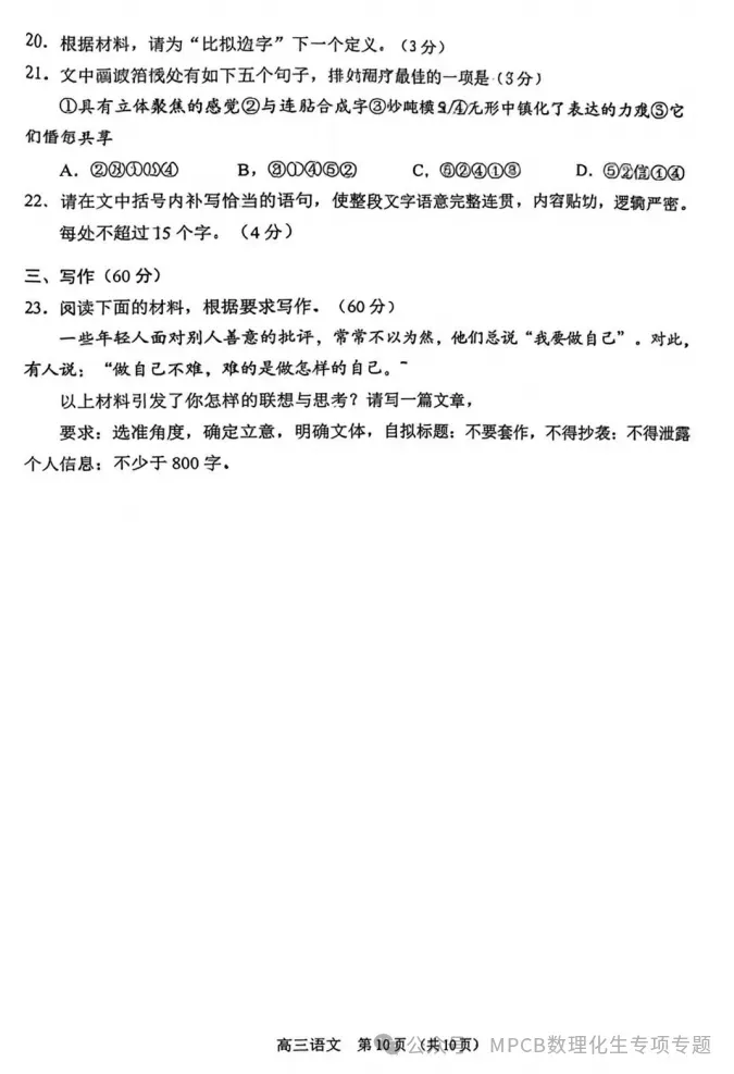 试卷册+答案解析册预估在200-270页左右/科!(黑白打印)
