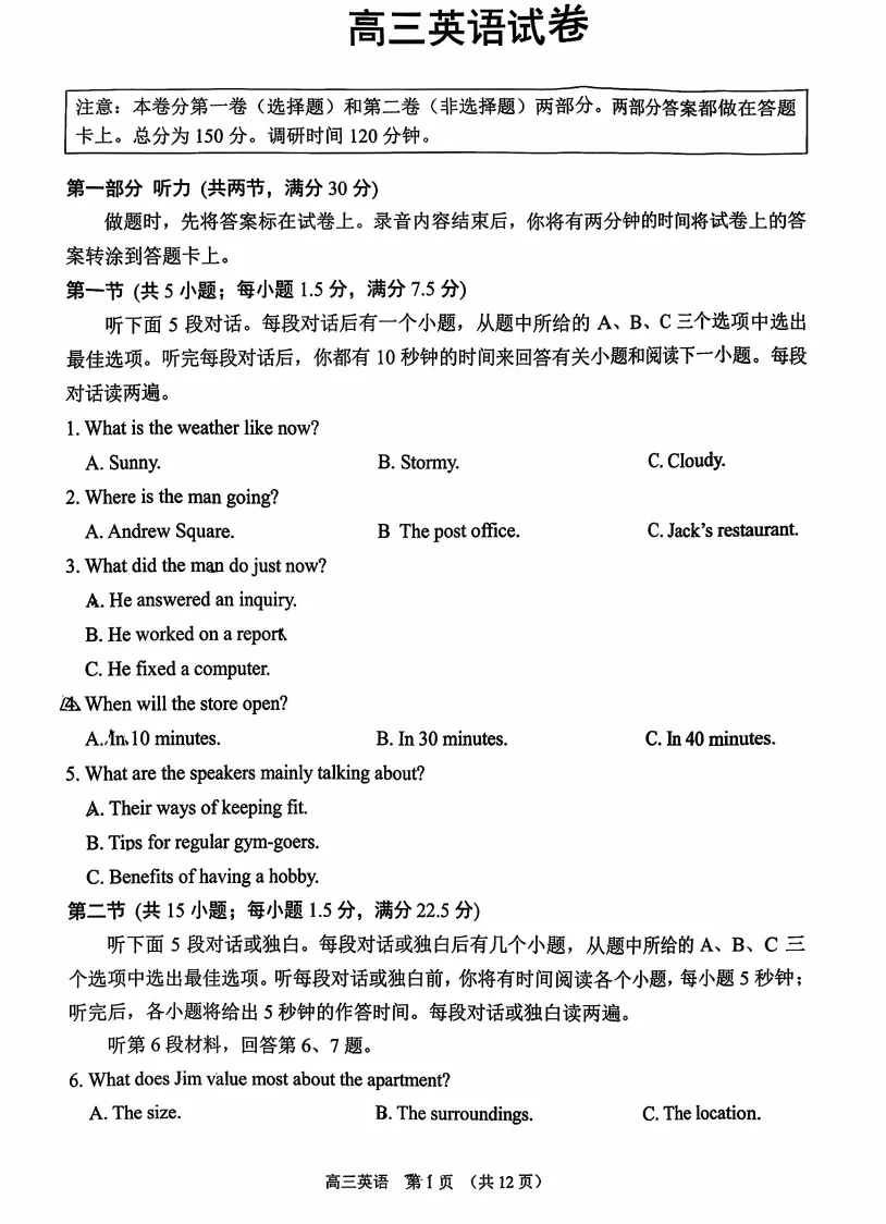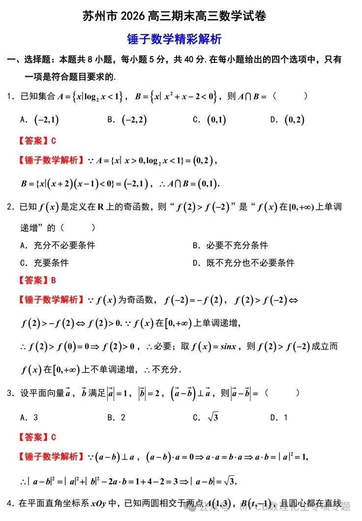 【江苏卷】江苏省苏州市2025-2026学年度第一学期2026届高三年级期末调研考试(苏州零模)(2.3-2.5) 数学物理英语语文历史试题卷+答案无页眉页脚页码无添加无私货无夹带无水印的纯净电子版部分内容展示【文末可下载全科打包版【文末可下载全科打包版(文未底部加黑加粗加大的蓝色字体"阅读原文"即为下载链接,点击即可进入下载链接】:
