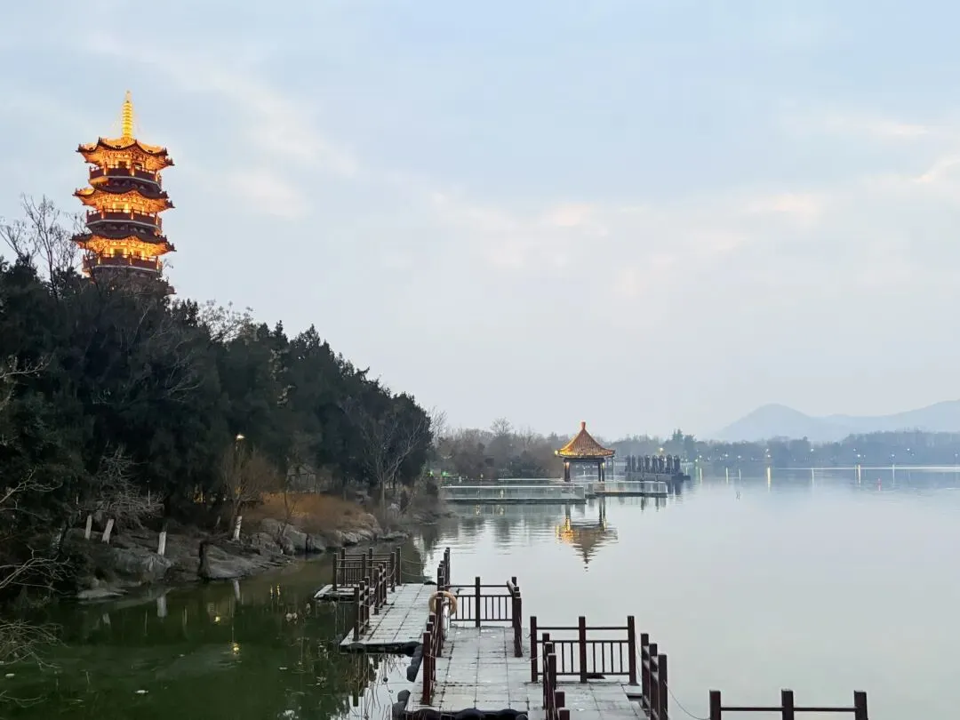 从汉画像石艺术馆出来,对面就是云龙湖,云龙湖是徐州唯一一个5A景区,非常大,当时天色渐晚,我只走到了苏公塔。