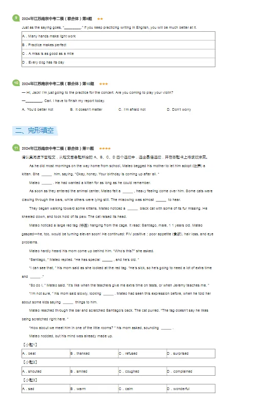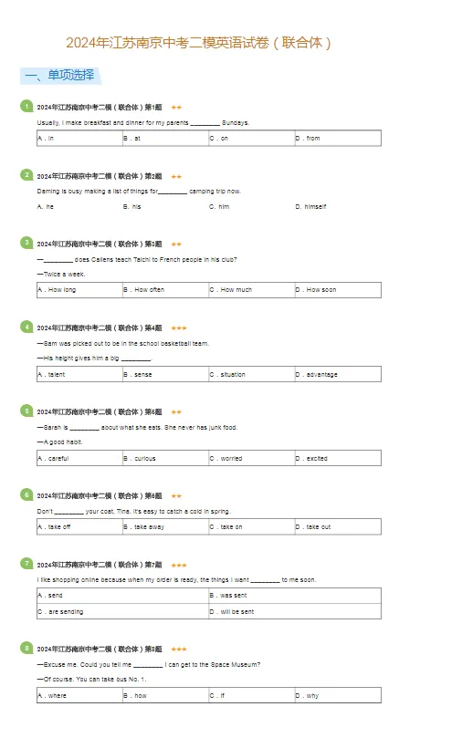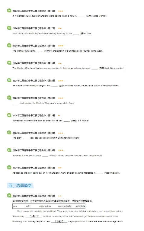 >2019-2024年江苏南京各区中考二模英语试卷