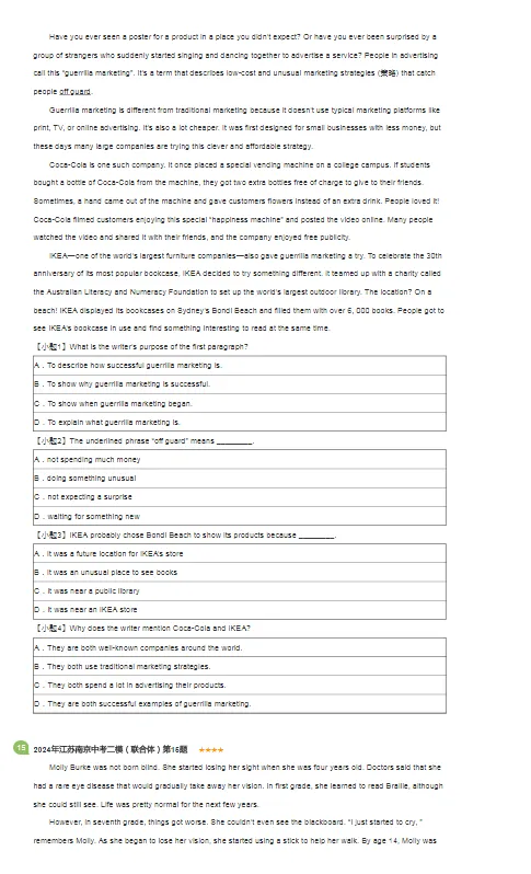 2019-2024年江苏南京各区中考二模英语试卷