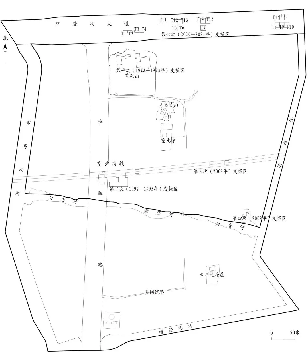 2020—2021年,为配合 312 国道的改扩建工程,苏州市考古研究所对草鞋山遗址进行了第六次考古发掘,发现马家浜文化至东周时期的墓葬、灰坑、水井、疑似水稻田等遗存,为探索草鞋山遗址新石器时代的聚落分布范围与布局、功能分区,以及进一步探讨马家浜文化-崧泽文化过渡期分期和史前稻作农业的发展积累了资料。
