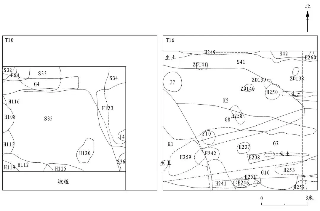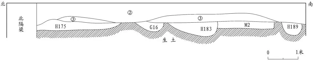 以 T16 南 壁 为 例 ,发 掘 面 海 拔 约 1.4 米(图五)。