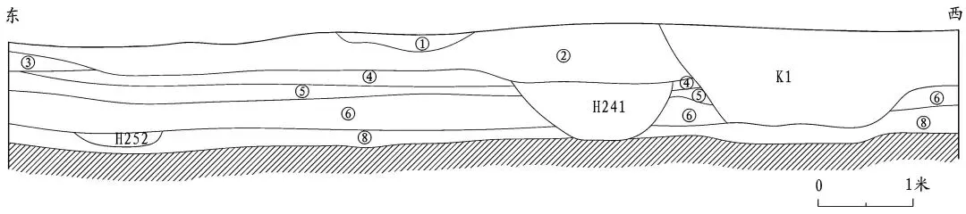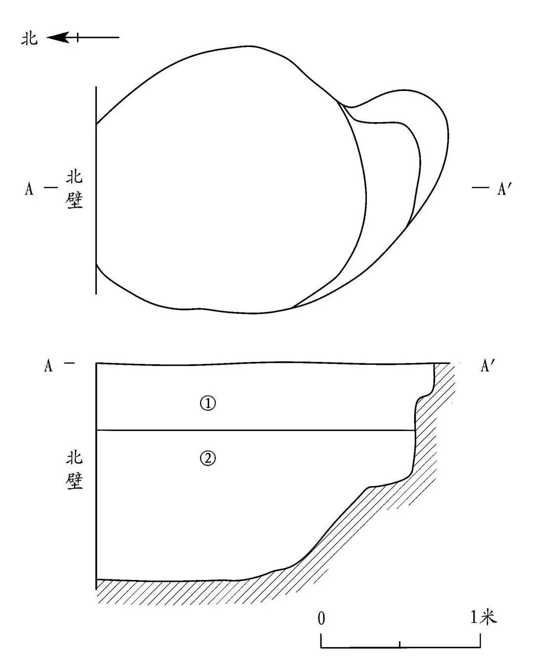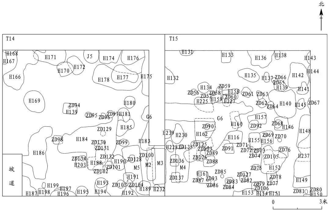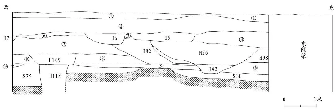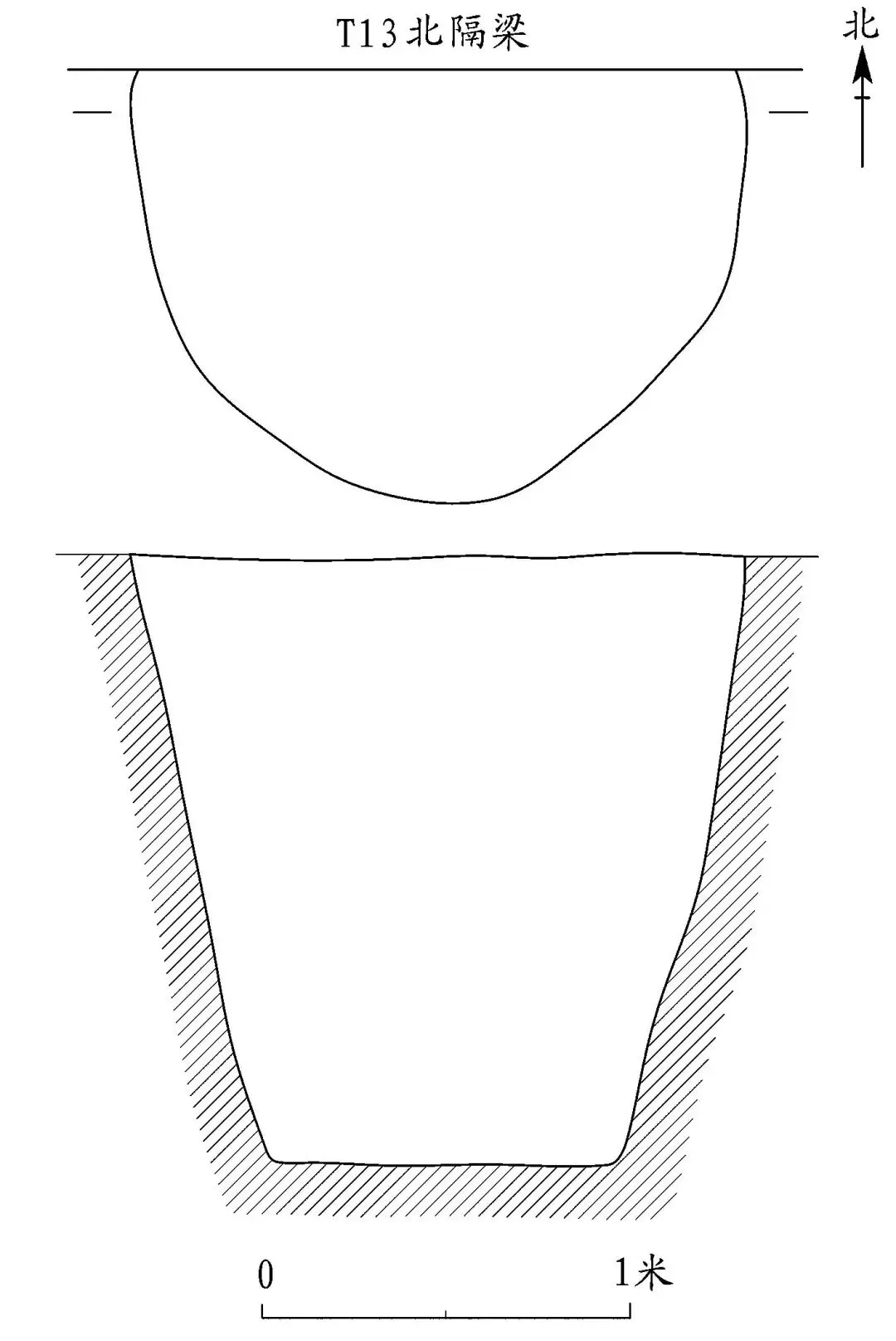 以 T14 东 壁 为 例 ,发 掘 面 海 拔 约 1.1 米(图三)。