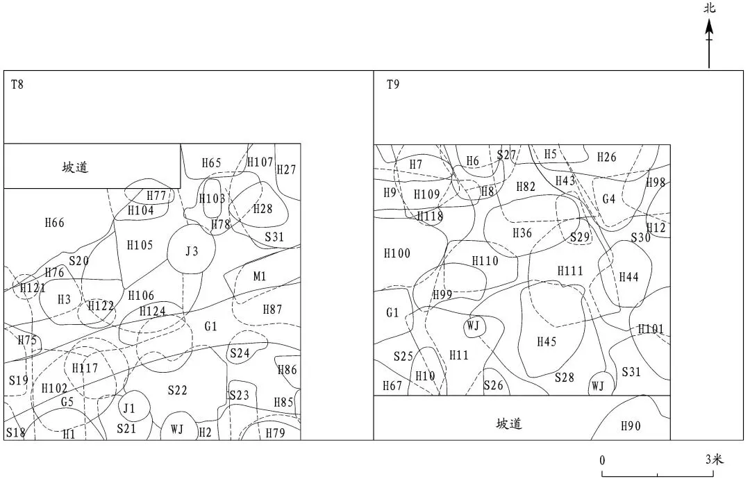 共 18 个灰坑、4 口水井,主要位于 T8、T9、T16和 T17。