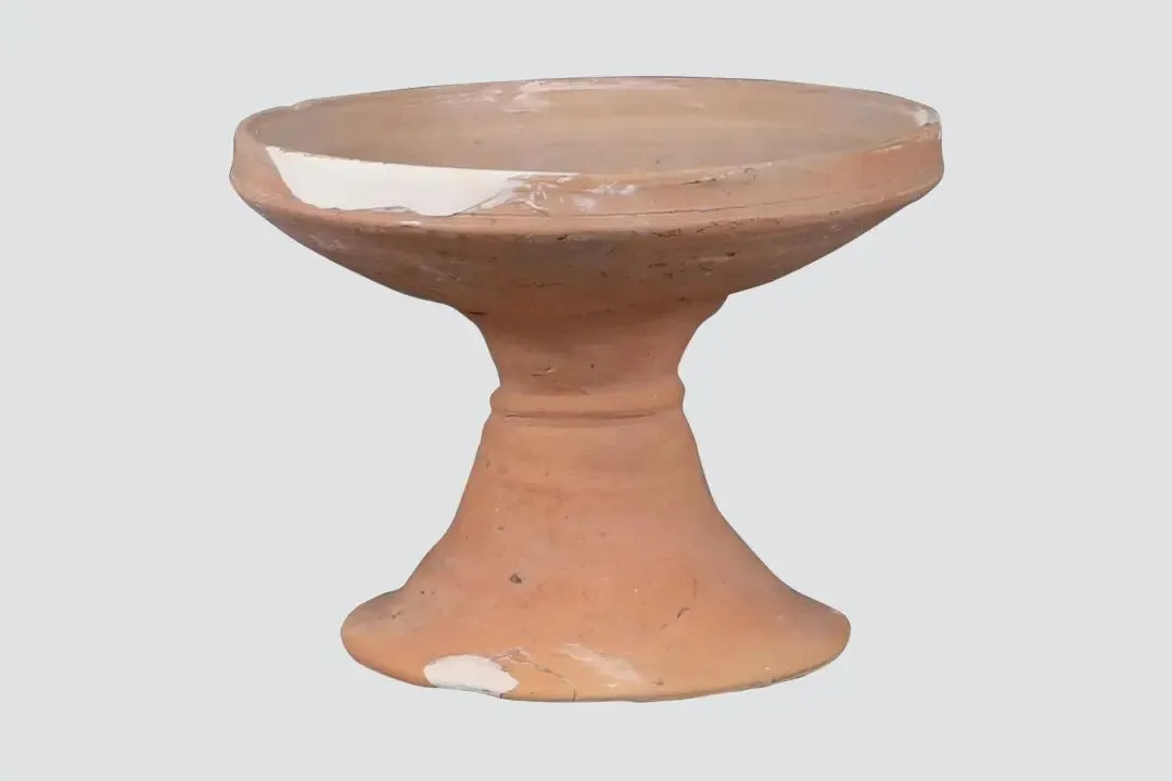 陶豆 1 件。M4∶1,夹砂红褐陶,局部灰色,器表施红衣,已剥落殆尽。敞口,口部微凸,尖圆唇,斜 弧 壁 ,喇 叭 形 圈 足 。口 径 29.9、圈 足 径 21.8 ~