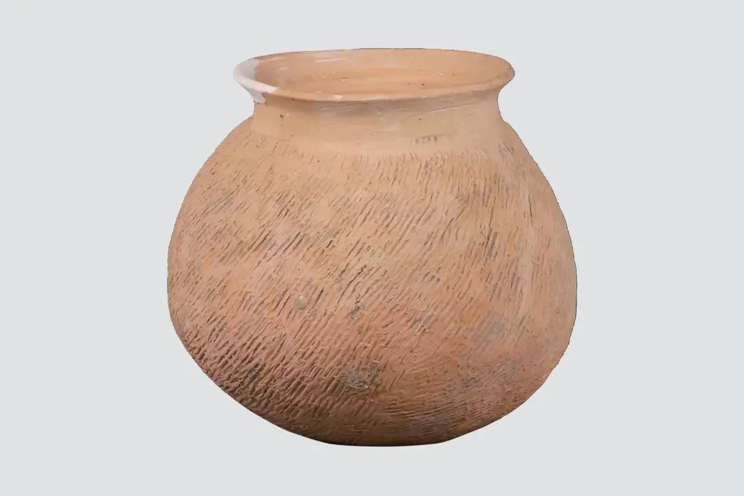 陶罐 4 件。J6∶1,夹砂黄褐陶。折沿,圆唇,直腹略弧,圜底。器身饰斜向篮纹,底部篮纹交错。口径 17.4 ~ 18.3、高 13.9 ~ 15.8 厘米(图一八∶ 3;图一九)。J6∶2,泥质橙陶。侈口,方唇,球腹略扁,圜底微凹。口沿面饰数道凹弦纹,器身饰斜向篮纹,底部饰交错篮纹。口径 12.5、底径 5.6、高16.9 厘米(图一八∶4;图二〇)。J6∶3,泥质橙陶。侈口,圆唇,球腹略扁,圜底微凹。口沿面饰数道凹弦纹,器身饰斜向篮纹,底部饰交错篮纹。口径