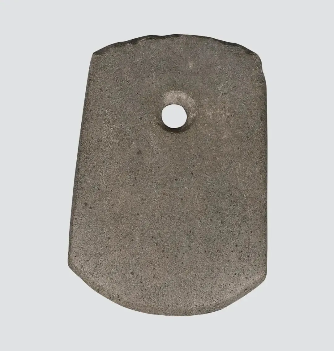 穿孔石斧 1 件。H118 ∶1,灰绿色。刃和顶为圆弧形,两侧边线较直,四角明显,双面钻孔,除顶部略经磨制外,其余均打磨光滑。长 16、顶 宽 9.8、刃 宽 11.1 、厚 1.9、孔 径 1.4 ~ 2.6 厘 米(图二八∶3;图二九)。