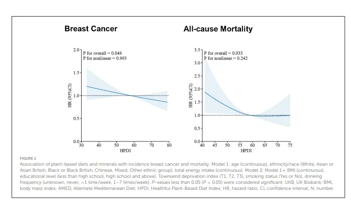 本研究旨在探讨植物性饮食模式(如健康植物性饮食指数HPDI)和微量营养素的摄入量对乳腺癌发病率及死亡率的影响。