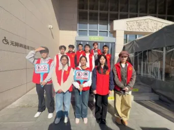 在岗志愿者以热情饱满的精神面貌,面带微笑迎接每一位到访游客,耐心指导游客操作线上预约系统,协助维持入馆秩序,确保游客高效顺畅地完成入馆前准备。