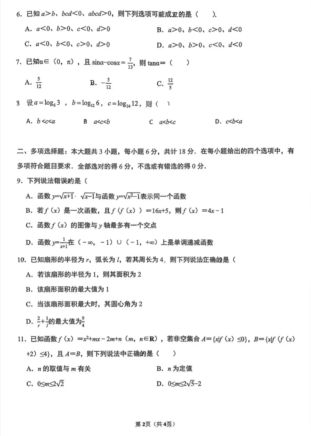 >解题 | No.815 2026年苏州中学高一上期末数学试卷