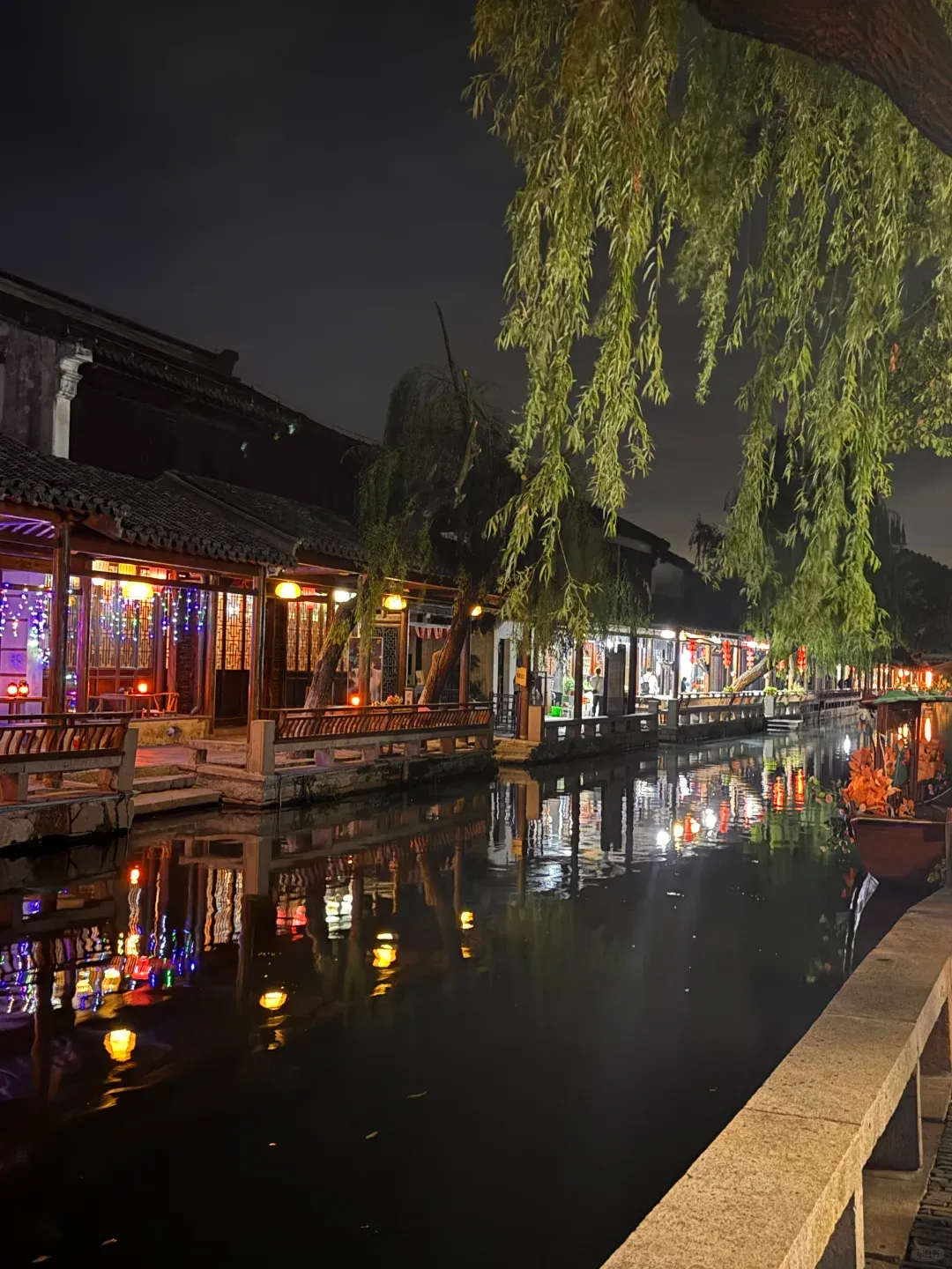 想图夜景,住周庄河边民宿,窗开就能看船灯,潮气重,带除湿袋,电蚊香别忘,早上船工会喊号,浅眠的先要个靠里房。