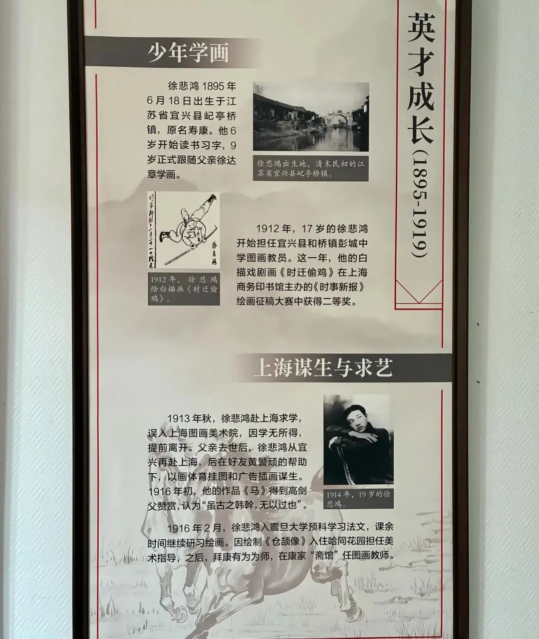 徐悲鸿出生于1895年,原名徐寿康,江苏宜兴屺亭桥镇人,自幼随画师父亲徐达章学书画。1919年赴法留学,就读巴黎国立高等美术学校,是中国近现代杰出画家、美术教育家,现代美术教育的奠基人。