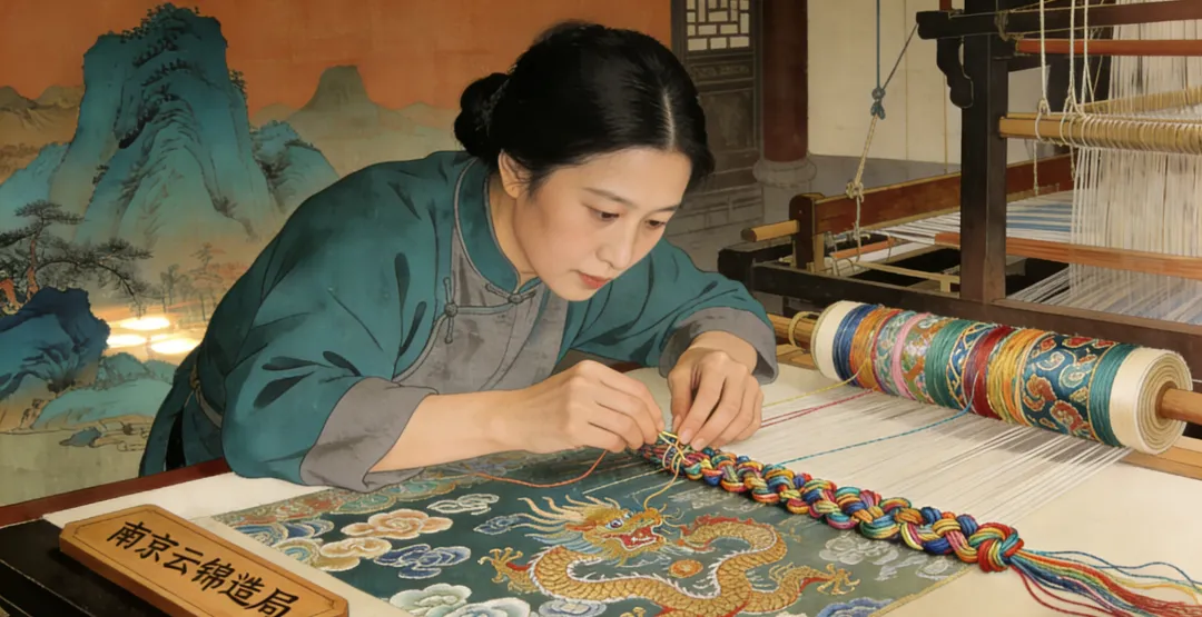 苏娘是南京云锦织造局的“花本娘”,四十一岁,眼力好得能分清十二种深浅不同的蓝,手指细长却布满老茧。她的活儿不是坐在织机前,而是伏在案上,把龙凤、云霞、江崖海水的图案,用五彩丝线打成一个个结,串成一卷卷花本,所以叫做花本娘。这花本,就是提花织机的程序,织工按照它才能织出寸锦寸金的云锦。