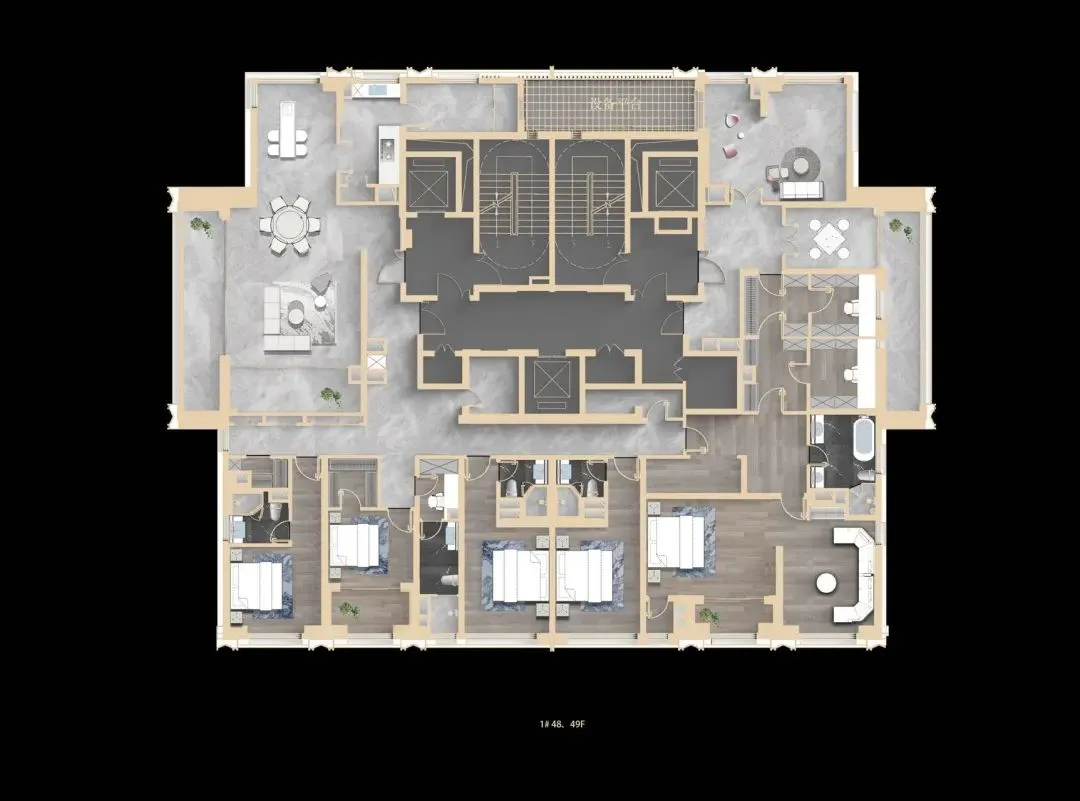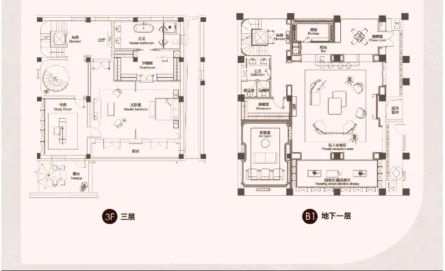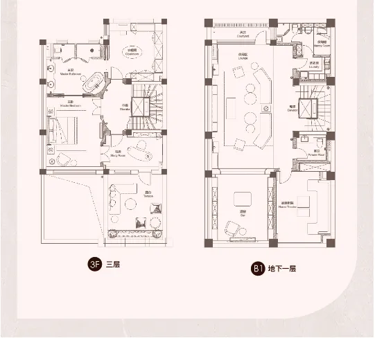 52套别墅,主力建筑面积:地上220-550平,上下5层一层层高约3.6米,二层3.4米,二层3个套房三层是主卧空间+露台地下两层挑空厅再下面一层是私家停️车库