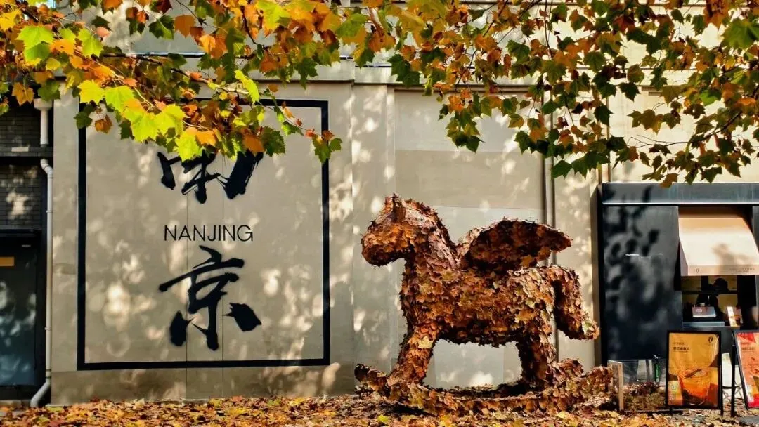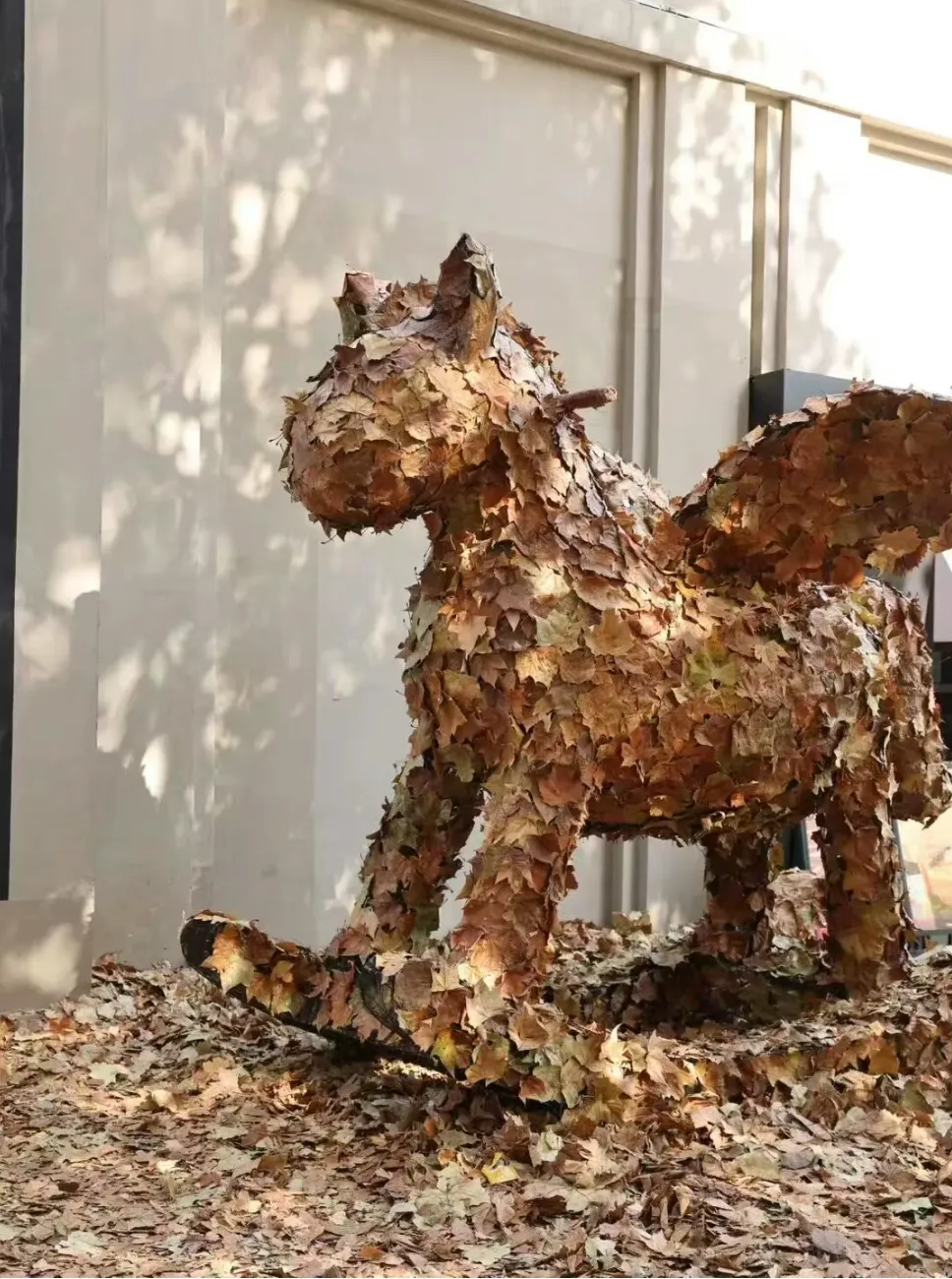 艺术家用梧桐落叶化作木马的“鳞甲”
