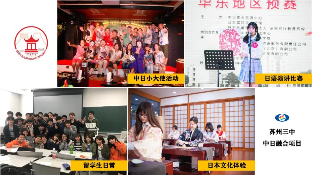 苏州市第三中学“中日班”创办于2009年,2018年进入中招提前录取批次(志愿代码:0609)。苏州市第三中学校是江苏首批、全市第一被授权具备高中日语课程教育的公办学校。