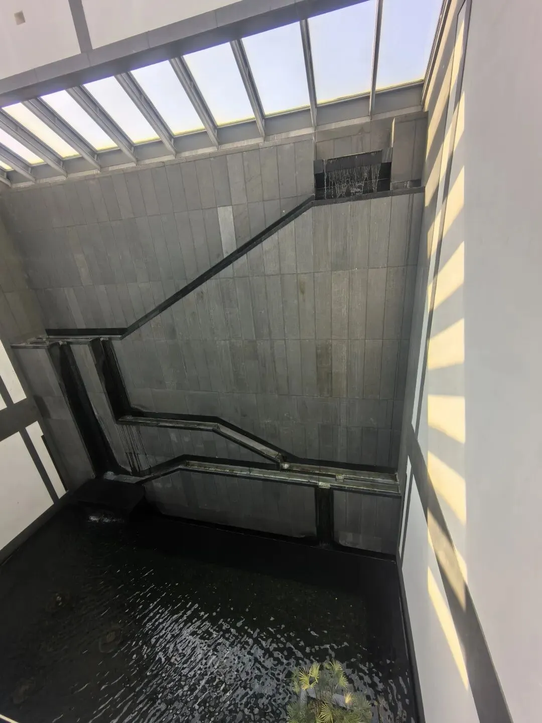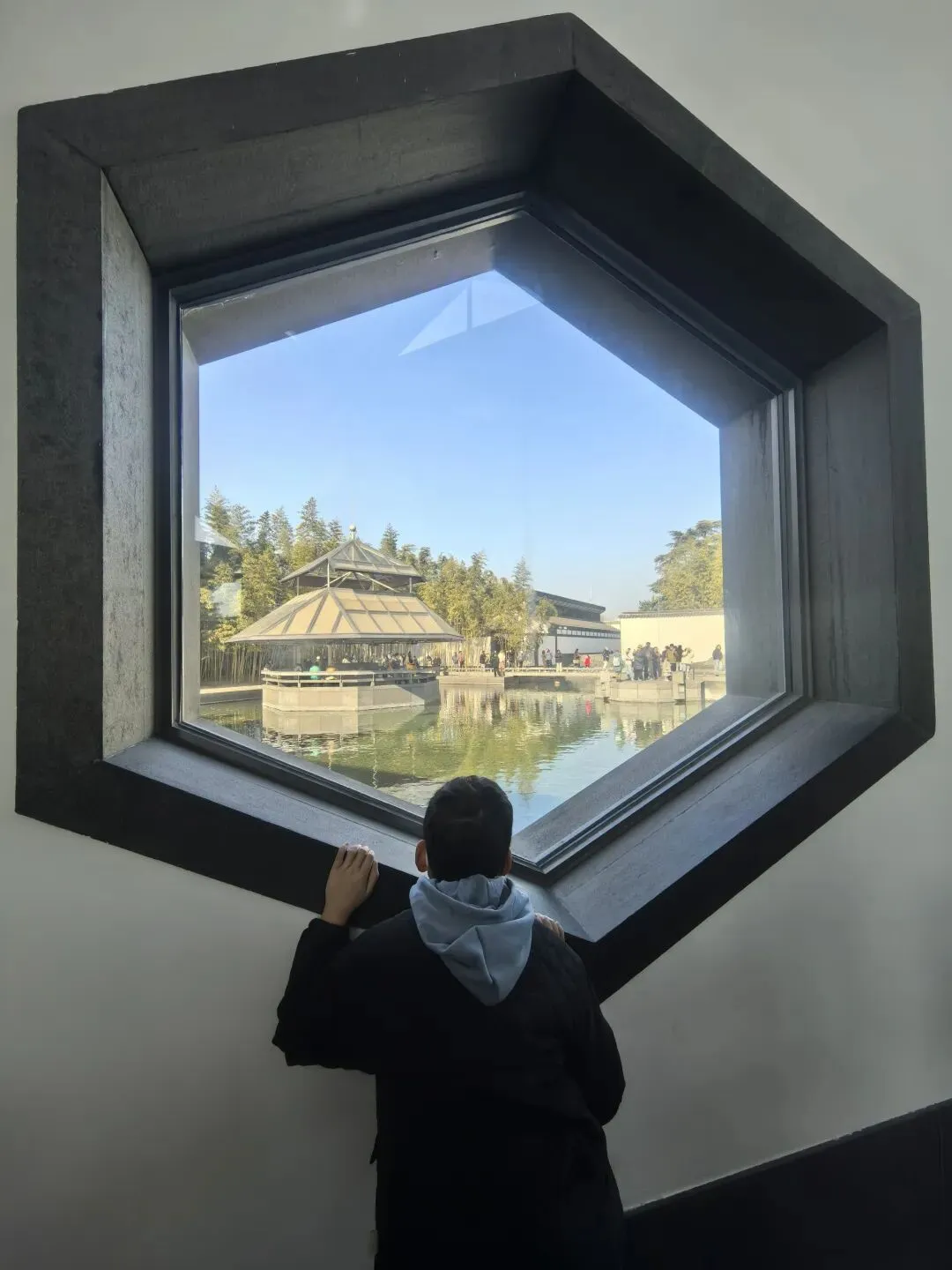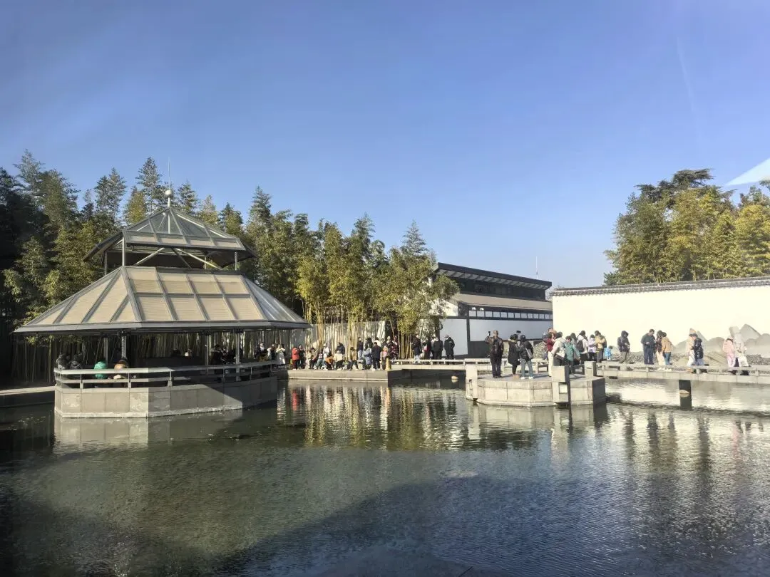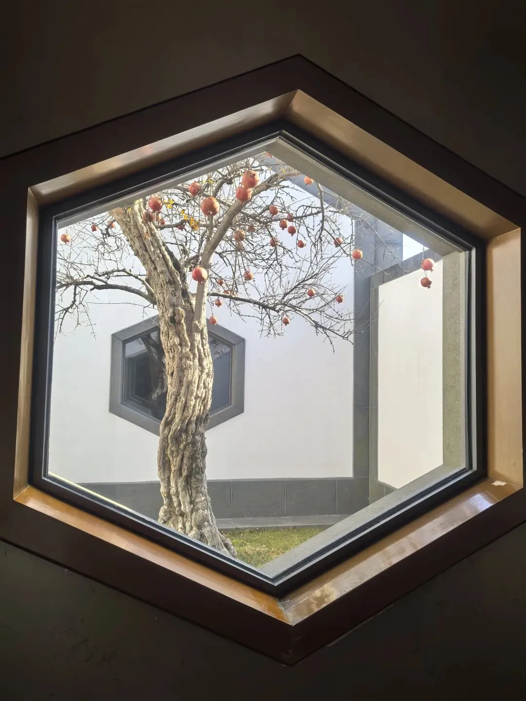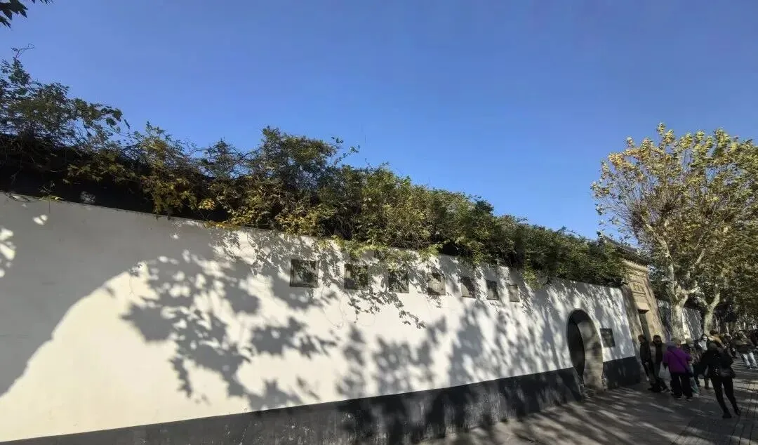 随便一个走廊都是这样倒影如画,阳光打射在这白色墙壁上既补充光线又在地面形成斑驳的倒影。桥上旅客络绎不绝,都在观赏自己景色,可没想你我均在我你的画中游。冬季冬青和松树仍然翠绿独傲迎春。这就是一个院子里的四季感知。这组片石假山是以"宋四家"之一米芾(fú)的一幅作品为蓝本,"以壁为纸,以石为绘",借拙政园白墙为纸,把巨石劈切成片,高低错落地叠放堆砌于墙前,成就了主庭院北墙之下这组独创的片石假山。若是在朦胧的烟雨季节,远远望去,如同一幅绘在墙上、浮在水中的水墨山水画。东廊是紫藤园、现代艺术厅、文创商店和儿童体验中心,出口也可以走这边。这是紫藤园,这不是文徵明种的那棵,文种的那在忠王府,期待下一篇里介绍。还有带的零食只能在这里面吃,博物馆里禁止享用,别问我是怎么知道的……哈哈……文创都在这能买到,满额也可以邮寄,也可以在她的淘宝的网上商城购买。有惊喜哦……白色粉墙将成为博物馆本馆的主色调,外面白墙再加这树影,典型的江南水墨画……