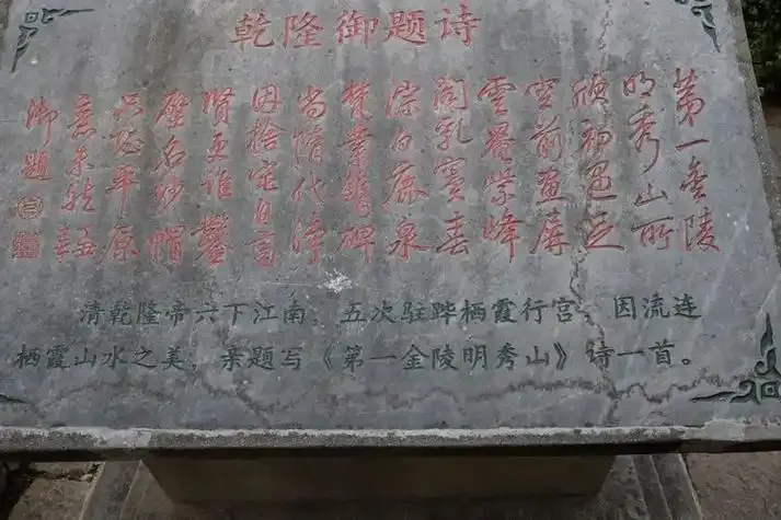 栖霞山的文化性和唯美性突破了其政治性,南朝皇帝陈叔宝、乾隆帝等都为栖霞山留下了墨宝,使其被列为“金陵四十八景”之一。南宋诗人赵伯晟、明代文学家袁宏道、清代文学家孔尚任等都曾以诗文赞颂栖霞山的风光。