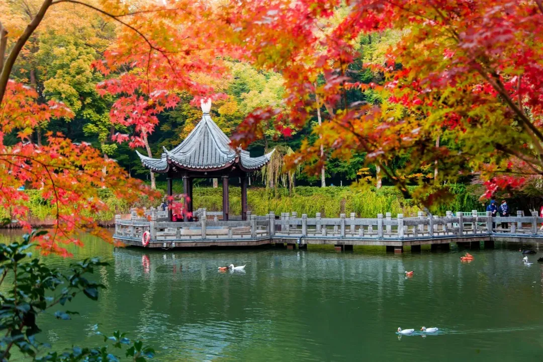 10:00 到达栖霞山景区自由浏览,当秋意漫过金陵城的轮廓,栖霞山便迎来了一年中最动人的时刻,漫山遍野的枫叶由绿转黄、由黄染赤层林尽染间红枫与古刹、清泉相映成趣,漫步其中,仿佛踏入一幅流动的水墨丹青,随着气温持续走低红叶变色速度将进一步加快,预计11月末12月初将迎来最美时刻。
