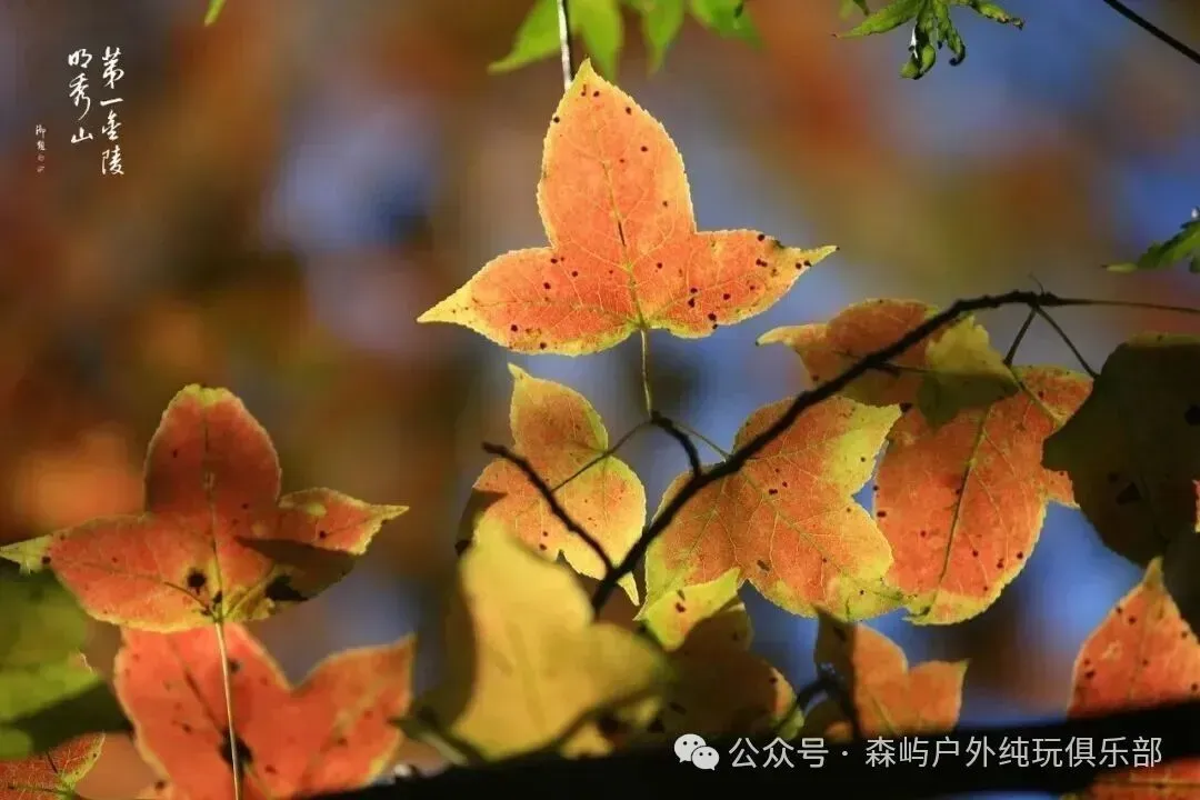 再加上深灰色树皮和紫红色小枝的配色,鸡爪槭是栖霞山景区内妥妥的拍照打卡C位选手~枫香,矗立在栖霞山枫林湖畔的“巨人”。叶片比鸡爪槭大2倍,掌状3裂的红叶在阳光下舒展,革质叶片泛着光泽。站在枫香树下,抬头是遮天蔽日的巨型红叶,低头是落叶铺就的“红地毯”,鼻尖还有叶片的淡淡清香萦绕。