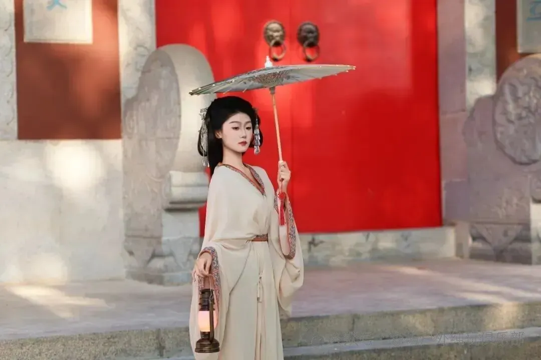 不管是古风还是现代,无论向左还是向右,漆面被秋光晒得暖融融的,质感绝了~ 看到好几个穿汉服的小姐姐,宋制襦裙配团扇往门旁一靠,谋杀胶片!!