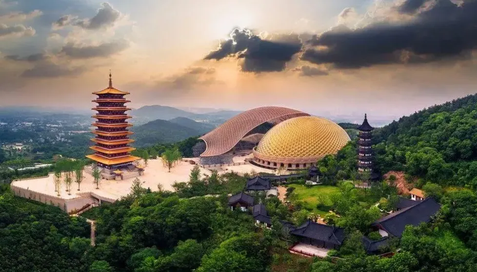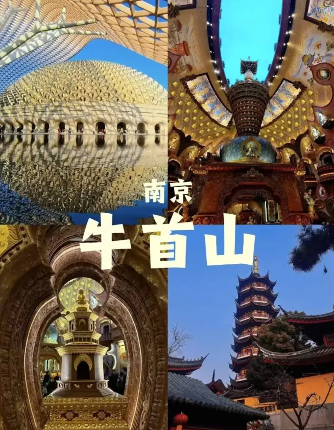 【牛首山】位于南京市江宁区,由牛首山、祖堂山、将军山、东天幕岭、西天幕岭、隐龙山等诸多大小山组成。牛首山属于宁镇丘陵西段南支,山高248米,因东西双峰对峙形似牛角而得名,《金陵览古》曰:“遥望两峰争高,如牛角然。” 牛首山是中国佛教名山,文化底蕴深厚,是佛教牛头禅宗的开教处和发祥地。山周围有感应泉、虎跑泉、白龟池、兜率岩、文殊洞、辟支洞、含虚阁、地涌泉、饮马池等自然景观,及宏觉寺、弘觉寺塔、郑和墓和抗金故垒等人文景观。牛首山风景宜人,每岁届春金陵百姓倾城出游,故有“春牛首”之称。