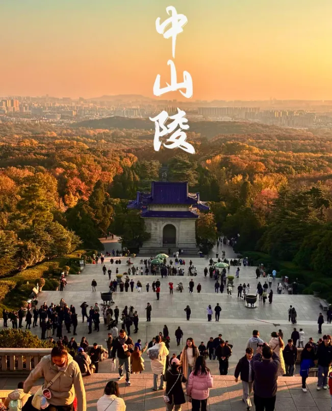 【中山陵】“民国建筑瑰宝,中山精神丰碑”,392级台阶笔直向上,登顶俯瞰紫金山全景,陵门“天下为公”匾额庄严肃穆,秋日银杏大道美如画。坐在最高的台阶之上,看层林尽染,浩然正气如松涛般扑面而来。朋友指着旁边的雪松告诉我,这是南京的市树,我说为什么不是最多看见的梧桐,他说这是一座历经苦难的城市,今天仍然生机勃勃,就像这雪松,挺拔苍劲,有风骨,有气节!是的,气节,正是我们这个民族不屈的精神力量!