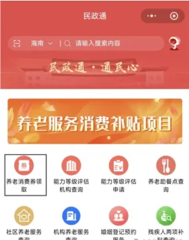 在App主页面上,找到并点击“养老消费券领取”。