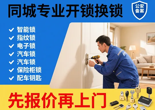 专业上门安装、维修各类锁具,包括保险柜开锁、U型锁开锁、防盗门开锁及维修【附近500米同城开锁】专业提供修锁、换锁、配汽车钥匙、汽车开锁、配备用钥匙、上门安锁等服务。服务正规可靠,涵盖密码锁、防盗门锁、保险柜锁、智能锁、U型锁等各类锁具维修与开锁。师傅电话:155 8595 4907,快速上门。