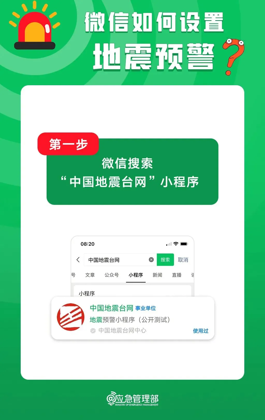 用户在微信内搜索“中国地震台网”或“地震预警”:
