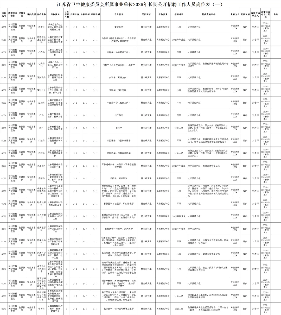 我院2026年长期公开招聘工作遵照《江苏省卫生健康委员会所属事业单位2026年长期公开招聘工作人员公告(一)》精神执行,现就具体事宜转发如下: