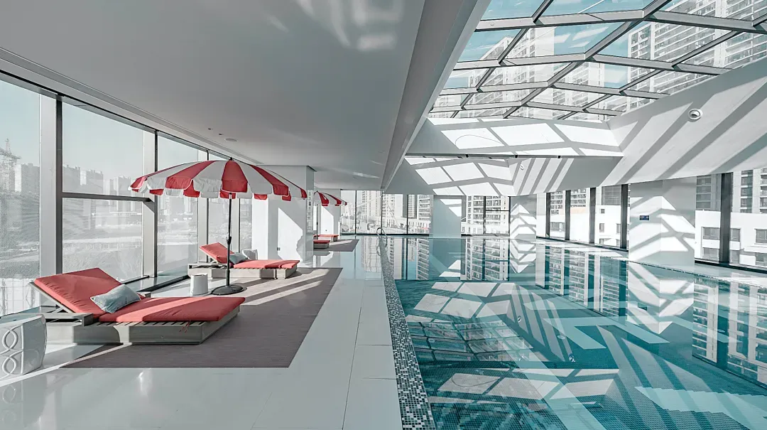 最后,它还是片区首个带露天泳池的项目,设下沉卡座、SPA按摩池、儿童戏水区等。