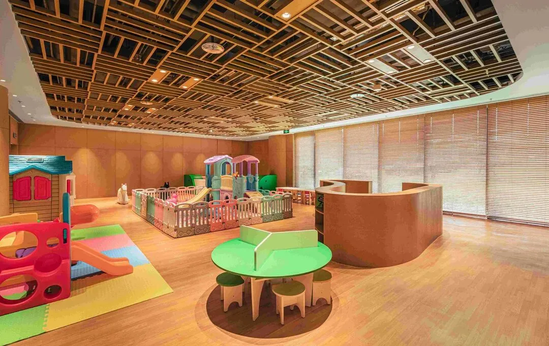 带孩子出行的家庭,酒店内有室内儿童游乐区。空间宽敞安全,铺设了木质地板,里面配备了摇摇马、小滑梯、积木屋、球池等多种儿童游乐设施,色彩明亮,充满童趣。