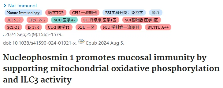 🏥医生选生信方向不踩坑:核心是 “ 临床痛点 + 生信热点 ” 结合,按科室(呼吸科 / 肿瘤科等)+ 资源(有无临床样本)精准匹配,不盲目跟风 。大家好!今天分享一篇 免疫生信 + 炎症性肠病 领域的高分文献 —— 发表于《Nature Immunology》,核心结论颠覆认知: MDS 高频突变基因 NPM1,竟是肠炎 “保护神”,靠调控线粒体代谢守护肠道黏膜 。不管是做 [免疫细胞机制] 的科研人,还是关注 [炎症性肠病治疗 / 血液病并发症] 的朋友,都能从这篇文章里挖到实用价值~骨髓增生异常综合征(MDS)高频突变基因 NPM1,常与炎症性肠病(IBD)并发,但二者关联机制不明。NPM1 是否调控 IBD、作用于何种细胞尚未明确,本研究通过解析 NPM1 在肠道 3 型固有淋巴细胞(ILC3s)中的功能,揭示其通过 p65-TFAM 轴调控线粒体代谢、维持 IL-22 分泌的保护机制,填补相关研究空白。临床痛点:IBD(溃疡性结肠炎 / 克罗恩病)易反复发作,还常与 MDS 并发,现有治疗难以根治,缺乏针对性分子靶点生信切入点:scRNA-seq 能精准定位疾病相关细胞亚群,破解传统 bulk 测序无法区分细胞类型的局限本文缺口:NPM1 是 MDS 高频突变基因,但它是否调控 IBD、具体作用细胞和分子机制完全未知先验证 NPM1 与 IBD 的关联→定位 NPM1 作用的细胞类型(ILC3s)→挖掘分子机制(线粒体代谢 + 转录调控)→实验验证靶点功能 + 药物挽救样本:22 例溃疡性结肠炎(UC)患者、20 例克罗恩病(CD)患者、29 例健康对照结肠组织;Npm1 基因修饰小鼠(Npm1⁺/⁻、Npm1 flox/flox 等)公共数据挖掘:分析 GSE182270 的 scRNA-seq 数据,筛选 NPM1 差异表达细胞群转录组分析:Smart-seq2 测序(GSE271455)+ 差异表达基因(DEGs)筛选功能富集:clusterProfiler 包做 KEGG/GO 分析,聚焦氧化磷酸化(OXPHOS)通路分子互作:ChIP-qPCR 验证 p65 与 TFAM 启动子结合关键工具:Seurat(细胞聚类)、FlowJo(流式分析)、GraphPad Prism(统计绘图)细胞实验:ILC3 细胞系(MNK3)敲低 / 过表达验证、线粒体功能检测(Seahorse 代谢分析)动物实验:DSS/TNBS 诱导肠炎模型、AOM/DSS 诱导结肠炎相关肠癌(CAC)模型UC 患者结肠 NPM1 表达显著降低(对照组 29 例 vs UC 组 22 例);Npm1⁺/⁻小鼠 DSS 诱导后体重下降更明显、结肠更短,AOM/DSS 模型中肿瘤数量增加(≥2mm 肿瘤数约 15 个 vs 对照组 5 个)。图 2:NPM1 特异性调控 ILC3s 的 IL-22 分泌敲除 ILC3s 的 Npm1(Rorc cre/+ Npm1 flox/flox 小鼠),DSS 诱导后肠炎更严重;ILC3s 分泌的 IL-22 水平显著降低,MNK3 细胞敲低 Npm1 后 IL-22 分泌减少 50% 以上。图 3:NPM1 调控 ILC3s 的氧化磷酸化通路scRNA-seq 富集分析显示,NPM1 低表达 ILC3s 中氧化磷酸化(OXPHOS)通路显著下调;RT-PCR 验证线粒体复合物基因(mt-Co1、mt-Atp6 等)表达降低。图 4:NPM1 通过 p65-TFAM 轴调控转录ChIP-qPCR 显示 p65 可结合 TFAM 启动子,NPM1 敲低后结合效率下降;过表达 TFAM 能挽救 Npm1 敲低导致的 IL-22 分泌减少。♦️我会为你提供和SCI期 刊同源 的可视化图表,包括火山图、热图、生存曲线等,所有图表都可根据期刊要求调整格式(如分辨率、配色、字体),直接用于投稿。首次揭示 NPM1-p65-TFAM 轴调控 IBD 的机制,填补 MDS 与 IBD 并发的分子空白锁定 ILC3s 为核心靶细胞,为开发 IBD 精准疗法提供方向验证苯扎贝特可挽救疾病表型,为老药新用提供直接证据人类样本以 UC 为主,CD 患者中 NPM1 降低不显著,需扩大样本验证未探究 NPM1 突变体(MDS 相关)对 IBD 的影响,临床转化需进一步验证研究通过生信挖掘 + 实验验证,发现 NPM1 在 ILC3s 中通过 p65-TFAM 轴调控线粒体代谢,维持 IL-22 分泌以保护肠道黏膜;NPM1 缺陷会加剧肠炎和肠癌,而线粒体激活剂可挽救这一表型,为 IBD 尤其是与 MDS 并发的患者提供了新的治疗靶点和药物方向。聚焦 “高频突变基因 + 并发疾病”,比如 TP53 与肝癌 + 肝炎、KRAS 与肠癌 + 胰腺炎优先选有公共 scRNA-seq 数据的疾病(GEO 关键词:IBD single-cell、MDS single-cell)基础分析:Seurat 做细胞聚类、clusterProfiler 做富集,跟着官方教程 3 天就能上手进阶分析:ChIP-qPCR 实验方案可参考 Cell signaling 技术手册,Seahorse 代谢分析有成熟商业化流程绘图:GraphPad Prism 画统计图表,SCI 论文通用,B 站有海量实操教程新手可先做生信挖掘 + 细胞系验证(MNK3、HEK293T 易培养),无需一开始做动物实验药物验证优先选临床已获批药物(如苯扎贝特),降低转化风险,易出阳性结果关注本号,后续持续分享生信高分文献拆解 + 复刻技巧,助力大家少走弯路、快速发刊!如果你有明确的发刊方向(如某类疾病、某类生信技术),可以留言‘科室+需求’(如‘呼吸科+肺癌预后标志物’),我会免费帮你评估选题可行性,给出初步分析方案框架” !