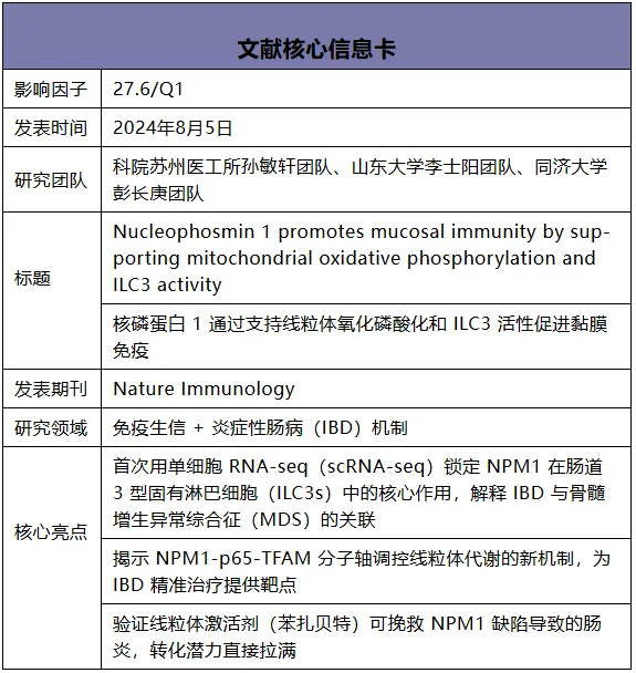IF27.6!恭喜南大附属苏州医院博士生拿下《Cell》子刊!揭示NPM1与线粒体功能在结肠炎和结直肠癌中的重要作用!