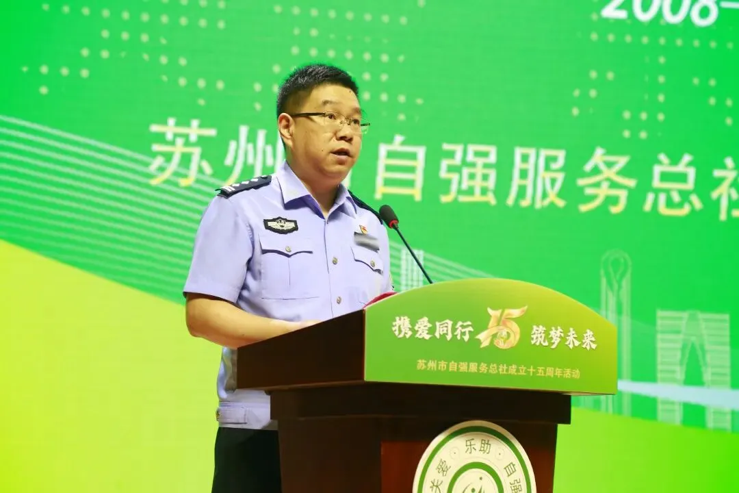 苏州市公安局党委委员、政治部主任花秋实为活动致辞:“苏州自强”建立成长十五年里,始终坚持全力贯彻国家、省禁毒办关于禁毒社会化工作的指导精神和科学部署,在苏州市禁毒委的坚强领导下,积极搭建上下贯通、执行有力的组织体系,着力建设高素质的禁毒社工队伍,“提前介入”“戒毒帮教”“平安关爱”等人性化举措让戒毒人员走出毒品困境;“暖心行动”“七彩夏日”“开学禁毒第一课”等禁毒宣传品牌项目点亮“无毒”星空;“自强禁毒艺术团”“青盾艺术团”“青盾交响乐团”与禁毒社工心手相连,织密立体关护的禁毒公益网络;戒毒人员帮教服务、毒品预防宣传教育、易制毒化学品管控等数据模块,搭建起可视化“苏州智慧禁毒平台”;网络直播互动、禁毒周边开发、原创禁毒漫画不断增强禁毒宣教影响力、号召力。在新时代赶考之路上,“苏州自强”不断贯彻新发展理念,构建新发展格局,实力推进苏州禁毒社会化工作高质量发展,并将接续十五年的初心使命,厚积薄发,向时代和人民交出优异的成绩单!