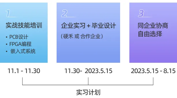 为提升即将读研的同学们的项目研发能力,确保同学们在读研期间能够在科研、产品开发、高质量论文发布方面有更高效的产出。硬禾科技联合苏州、上海、合肥等地的高新技术企业,为已经获得保研资格的同学们提供为期1个月的基础研发技能培训(苏州硬禾)和5个月以上企业实际项目实战 + 毕业设计相结合的机会。在企业资深工程师的指导下,同学们可以在最短的时间内实现从书本理论知识到实际动手技能的飞跃,以一篇高质量的本科毕业论文完美结束自己的本科生涯,并为未来三年的研发工作奠定坚实的基础,对于学生本人、未来的研究生指导老师以及学生所在的院系都是非常有益的。
