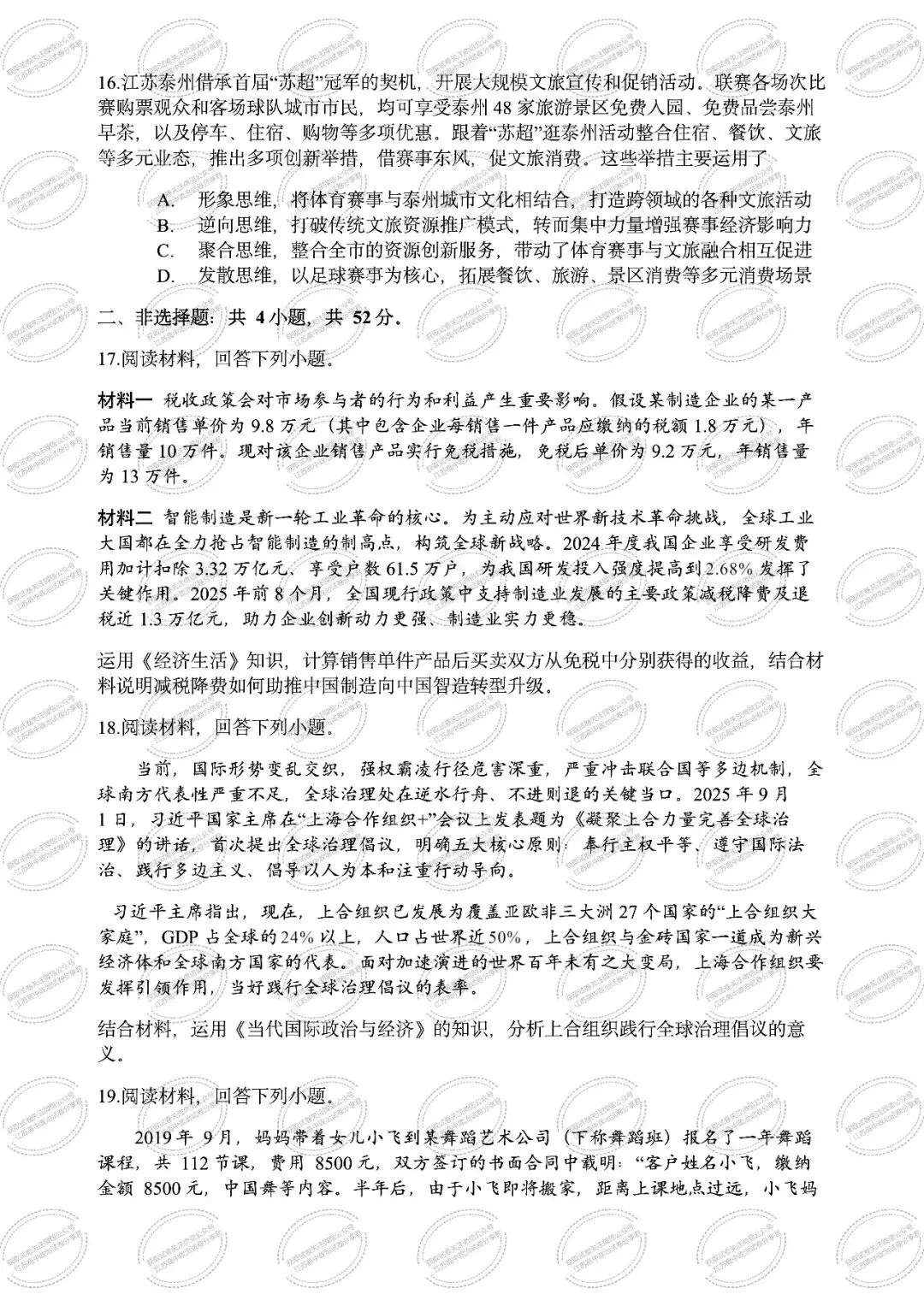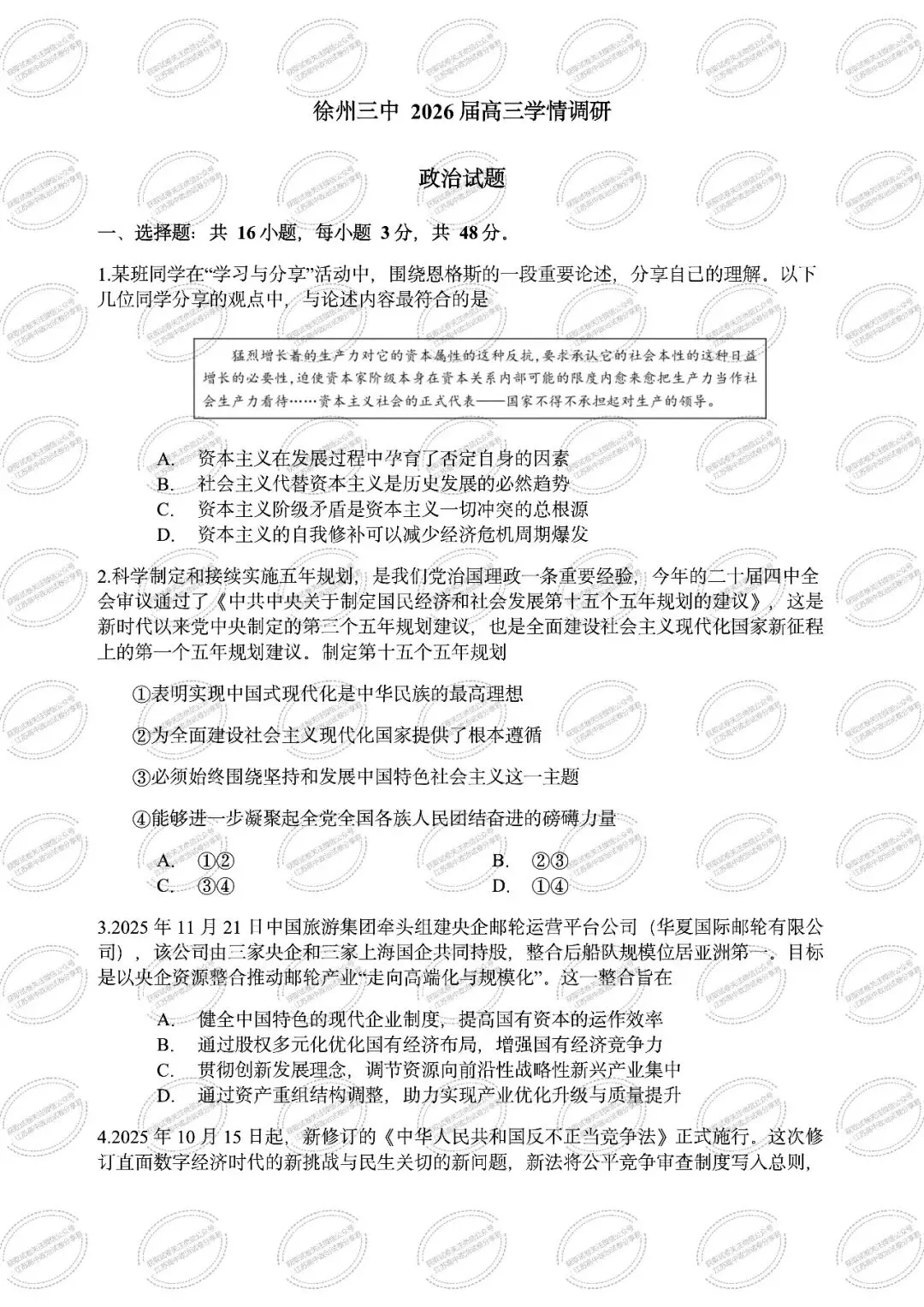 >江苏省徐州市第三中学2025-2026学年高三上学期1月期末考试政治试题