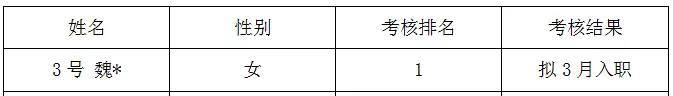 按总成绩从高到低排名确定拟录用1人,现将拟录用名单公示如下: