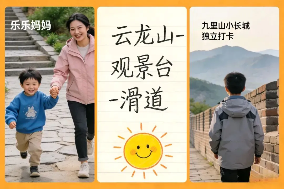 互动:带个笔记本让娃画“爬山路线图”,标注遇到的景点和趣事,回家后一起回忆,这就是最珍贵的亲子纪念