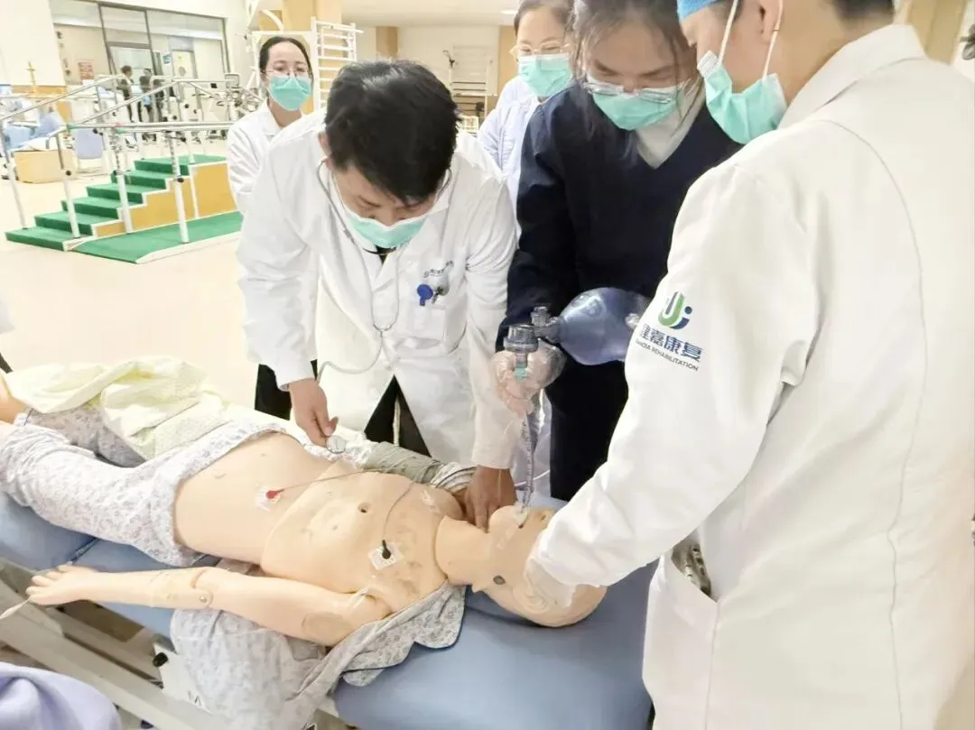 南京健嘉方面,亮点突出于吞咽障碍窒息急救的精准化和个性化:一是针对吞咽障碍患者的不同体质,演练了多种场景下的海姆立克急救变式操作,涵盖清醒患者、意识不清患者的不同操作规范,同时结合吸痰器、喉镜等设备的协同使用,形成“徒手急救+设备辅助”的双重救援模式,适配康复科患者多为老年、体弱群体的特点,提升了急救的适用性;二是融入吞咽障碍风险前置理念,在演练中加入“急救后评估”环节,医护人员在患者脱离危险后,立即对其吞咽功能进行再次评估,同步调整后续进食方案和康复训练计划,实现“急救-康复-预防”的闭环管理,既提升了急救技能,也强化了医护人员的风险防范意识,从源头减少窒息风险的发生。