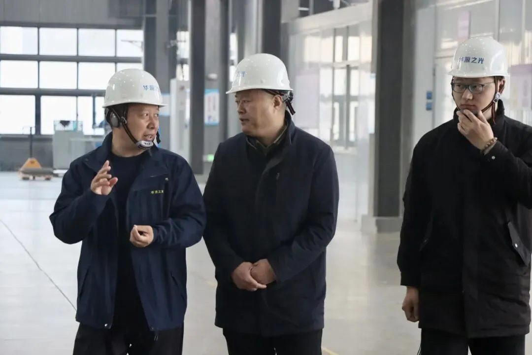 王东一行实地参观了华源新能源项目建设、生产流程、运营模式、战略规划及产业布局等情况,对华源之光在技术创新领域取得的成绩给予称赞。